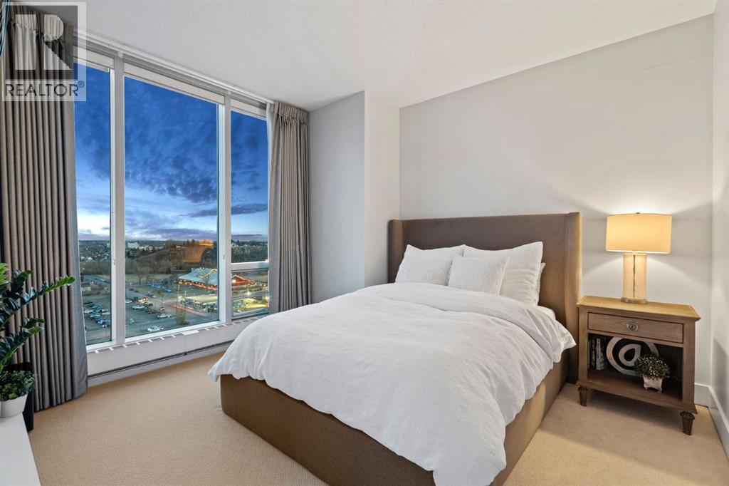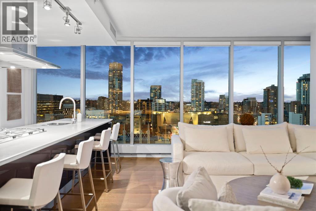 Experience elevated downtown living in this stunning 16th-floor residence at the iconic Arriva Tower. Spanning 1,367 sq. ft., this bright and airy corner unit offers 2 bedrooms, 2 bathrooms, and uninterrupted east facing views through floor to ceiling windows that capture the morning light and stretch across the city skyline and Bow River valley. The orientation provides an incredible sense of privacy and tranquility, paired with sweeping, ever changing vistas.The contemporary kitchen is a showpiece, featuring a full Miele appliance package, gas cooktop, sleek cabinetry, and an expansive island that anchors the open concept layout. Stunning engineered hardwood floors flow throughout the main living spaces, creating warmth and sophistication against the modern design.The spacious living and dining areas are perfect for entertaining or simply relaxing while taking in the panoramic views. The primary suite is a true retreat, complete with a walk-through closet and spa-inspired ensuite featuring a deep soaker tub and glass-enclosed shower. A generous second bedroom and full bathroom offer flexibility for guests or a home office.This home includes two titled underground parking stalls, an assigned storage locker, central air conditioning, and high speed elevators for quick, private access.Known for its luxury living and exceptional service, the Arriva Tower offers a full time concierge who also accepts parcel deliveries, a convenient bonus for residents. Additional building features include 24-hour security, two guest suites, an owner’s lounge and event room, and a beautifully maintained fourth floor courtyard terrace with BBQ area for outdoor relaxation.Located in the vibrant Beltline, steps from the Stampede Grounds, future Event Centre, C-Train access, and Calgary’s best restaurants and entertainment. (id:6769
