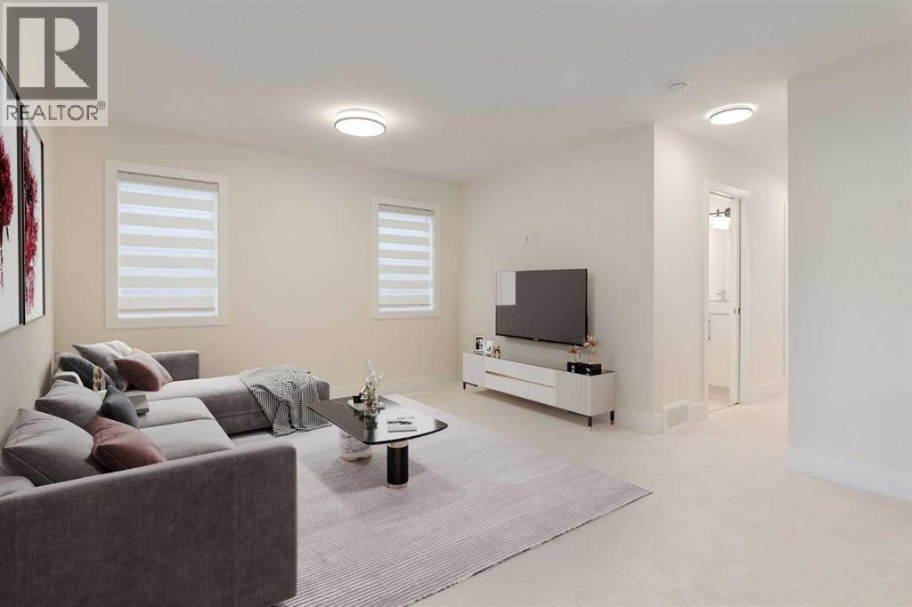 Experience refined modern living in this brand-new Truman-built “Forte” home, perfectly positioned in the prestigious community of Aspen Woods. With over 2,900 sq. ft. of fully developed living space, including a professionally finished basement, this west-facing property backs onto green space and offers both luxury and functionality in a truly move-in-ready residence. The main level is thoughtfully designed with 9 ft ceilings, elegant 8 ft doors, upgraded lighting, and luxury vinyl plank flooring that extends throughout the main floor and basement. A striking gas fireplace with a full-height marble surround anchors the open living area, creating a sophisticated focal point for everyday living and entertaining. At the heart of the home, the chef-inspired kitchen features full-height cabinetry, quartz countertops, a walk-through pantry, and an upgraded SS appliance package including a gas stove, chimney-style hood fan, and built-in microwave. The adjacent dining area opens onto a west-facing Duradeck-finished deck with a gas line, ideal for outdoor gatherings and sunset views. The upper level offers 4 generously sized bedrooms, a bright bonus room enhanced by dual windows, and a conveniently located laundry room. The primary suite is a private retreat, complete with a spa-like ensuite showcasing an upgraded glass shower, standalone soaker tub, and refined finishes. Upgraded carpeting adds warmth and comfort throughout the upper floor. A separate side entrance leads to the fully finished basement, which expands the home’s versatility with a spacious recreation room, wet bar, bedroom, and a full 4-piece bathroom—perfect for guests or multi-generational living. Luxury vinyl plank flooring continues on this level, maintaining both style and durability. Additional features include a finished garage, thoughtfully upgraded lighting, and Truman’s renowned build quality. Located close to top-rated schools, LRT access, shopping centres, downtown Calgary, and major transportat ion routes, this exceptional home delivers a seamless blend of elegance, comfort, and convenience in one of Calgary’s most desirable west-side neighbourhoods. (id:6769