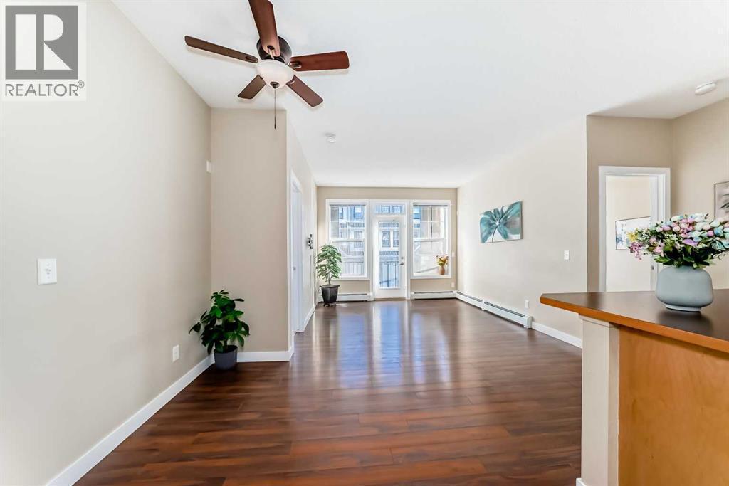 Excellent opportunity for comfortable living or investment. This well-maintained 2-bedroom, 2-bathroom corner unit is located in a quiet, modern building in the highly desirable Panorama Hills community. It includes a titled heated underground parking stall with an adjacent storage locker, offering both convenience and value. The bright open-concept living, dining, and kitchen area features 9-foot ceilings, creating a spacious and welcoming atmosphere. The kitchen is equipped with a large breakfast-bar island, ample cabinetry, and generous counter space—perfect for both everyday living and entertaining. The east-facing balcony provides abundant natural light and an ideal spot to enjoy your morning coffee or BBQ. The primary bedroom features a 4-piece ensuite and a rare walk-in closet with a side window, adding extra light and comfort. The second bedroom is generously sized and conveniently located next to another 4-piece bathroom, along with in-suite laundry for added practicality.Enjoy a prime location within walking distance to elementary and junior high schools, scenic ponds, and walking trails. Close to shopping centres, banks, restaurants, and playgrounds, with easy access to Stoney Trail, the airport, and the mountains. (id:6769