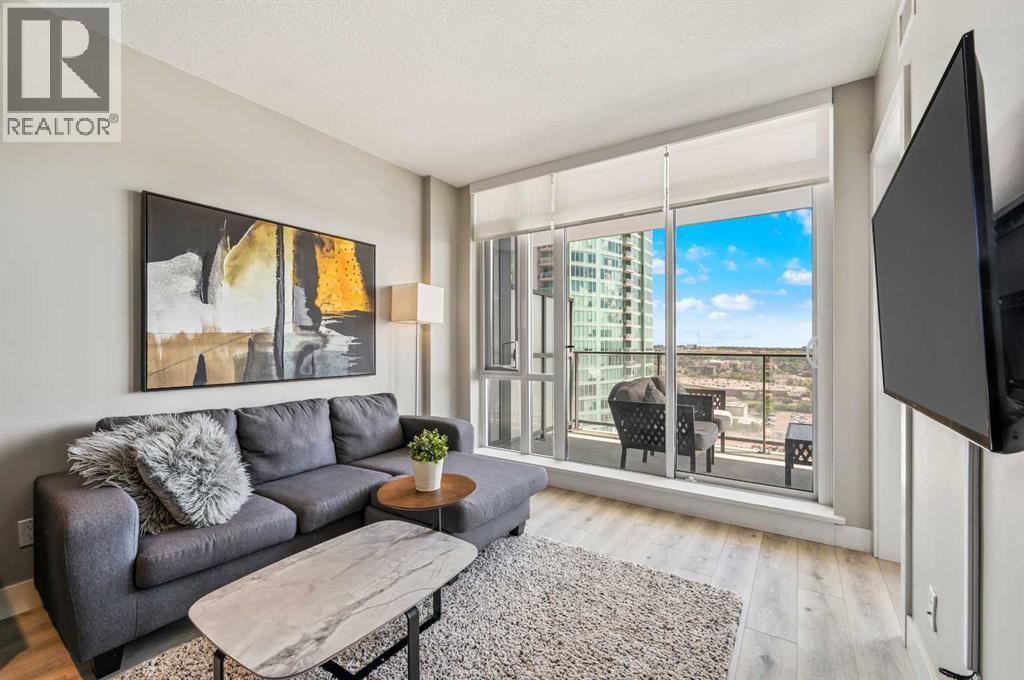 Welcome to elevated downtown living at The Guardian. Situated on the 18th floor, this thoughtfully designed 1-bedroom residence offers a smart, efficient layout that lives larger than its footprint—perfect for urban professionals, investors, or anyone craving a lock-and-leave lifestyle.The unit is fully furnished, making it an effortless move-in or turnkey investment. Clean lines, modern cabinetry, quartz countertops, and expansive floor-to-ceiling windows create a contemporary space filled with natural light and striking city views.Residents of The Guardian enjoy first-class amenities including a state-of-the-art fitness centre, residents’ lounge, concierge service, and secure building access. An assigned parking stall and storage locker—rare finds in the core—complete the package.Steps from Stampede Park, East Village, dining, shopping, and transit, this is downtown Calgary living at its best—stylish, convenient, and connected. (id:6769
