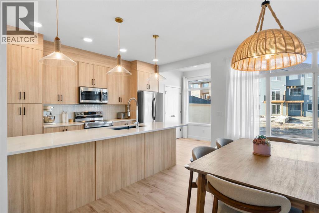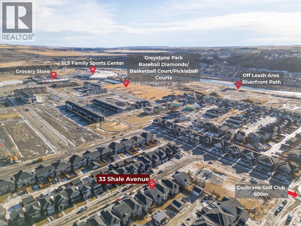 ***OPEN HOUSE THIS SUNDAY, MARCH 15th, FROM 1-4PM*** Welcome to 33 Shale Ave, located in the highly desirable Greystone community, this 2024 built, bright and beautifully finished home offers a modern layout, thoughtful design, and fantastic future potential. The main floor features a warm and inviting living room with wide plank flooring and large windows, flowing seamlessly into a stylish kitchen complete with quartz countertops, sleek cabinetry, stainless steel appliances, a large peninsula with seating, and contemporary pendant lighting. The adjacent dining area is filled with natural light and offers plenty of space for hosting, while a convenient 2-piece bathroom completes this level. Upstairs, the primary bedroom provides a comfortable retreat with a walk-in closet and a stunning ensuite featuring dual sinks, modern finishes, and a spa-inspired feel. Two additional bedrooms are well-sized and versatile, ideal for children, guests, or a home office, and are complemented by a full bathroom. A conveniently located upper-level laundry room adds everyday functionality. The basement is an open, unfinished space ready for your personal vision, offering room for a future recreation area, additional bedroom, or home gym, along with ample storage. Outside, the backyard provides space to enjoy the outdoors complete with a poured rear parking pad measuring 20'x22', ready for future garage development, adding long-term value and convenience. Set in a growing community close to parks, pathways, pickleball courts, the new Co-op grocery store, Spray Lakes Sports Family Centre, indoor golf, and the Cochrane Golf Club, this home blends contemporary comfort with flexibility for the future. Whether you’re a first-time buyer, growing family, or investor, this home delivers modern style, flexibility, and an unbeatable location in one of Cochrane’s fastest-growing neighbourhoods. (id:6769