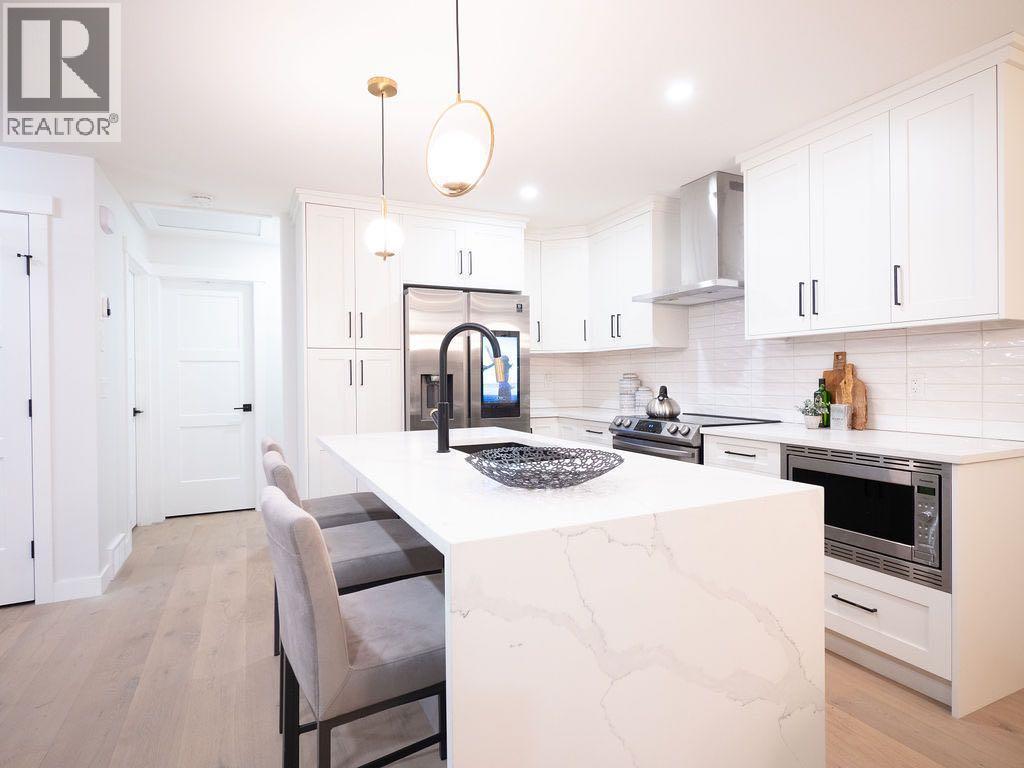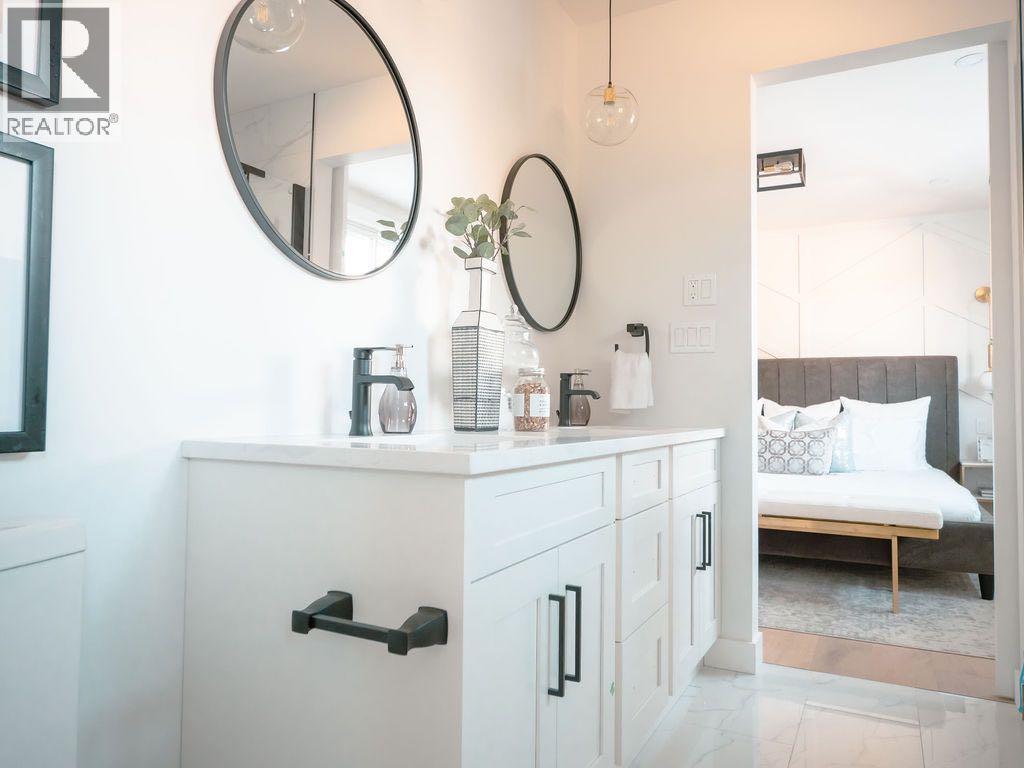 Step into this impressively renovated home, gutted and transformed inside and out approximately two years ago, where a wide open floor plan immediately captivates.The heart of this home is the stunning kitchen, part of the extensive renovation completed around mid-2023, boasting a massive island with a striking waterfall quartz countertop. It's fully equipped with stainless steel appliances, ample storage in a large pantry, and sleek quartz counters throughout.Don't be deceived by the exterior; this home offers surprisingly spacious rooms. The master suite is a true retreat, measuring 14'5"x11'8". It features a luxurious full ensuite, also part of the home's comprehensive renovation, complete with dual sinks, a beautifully tiled glass shower, a separate soaker tub, and a walk-in closet outfitted with custom shelving.The main floor also includes a large second bedroom, another full bathroom, and an inviting open-concept dining and living area. A cozy fireplace and gleaming hardwood floors, all updated during the renovation, enhance the warmth and elegance of this space.Descend to the fully finished basement to discover an expansive family room, perfect for entertaining or relaxing. This level, also fully renovated, houses a stylish laundry room, a full bathroom with a tiled glass shower, and two additional generously sized bedrooms. The layout here offers excellent potential to create an in-law suite or a separate second unit by adding a kitchen, A secondary suite would be subject to approval and permitting by the city/ municipality.The exterior, completely redone roughly two years ago, features durable Hardie siding, concrete walkways, and landscaping. A double detached garage provides ample parking and storage.Investment Opportunity & Versatility: This property has a proven track record as a successful Airbnb rental, boasting excellent ratings, making it a turnkey option for those interested in a short-term rental business. Alternatively, its thoughtful layout easily lends itself to multi-generational living or conversion into two separate units.This exceptional, fully renovated home is a rare find, offering both a beautiful living space and significant income potential. An absolute must-see. (id:6769