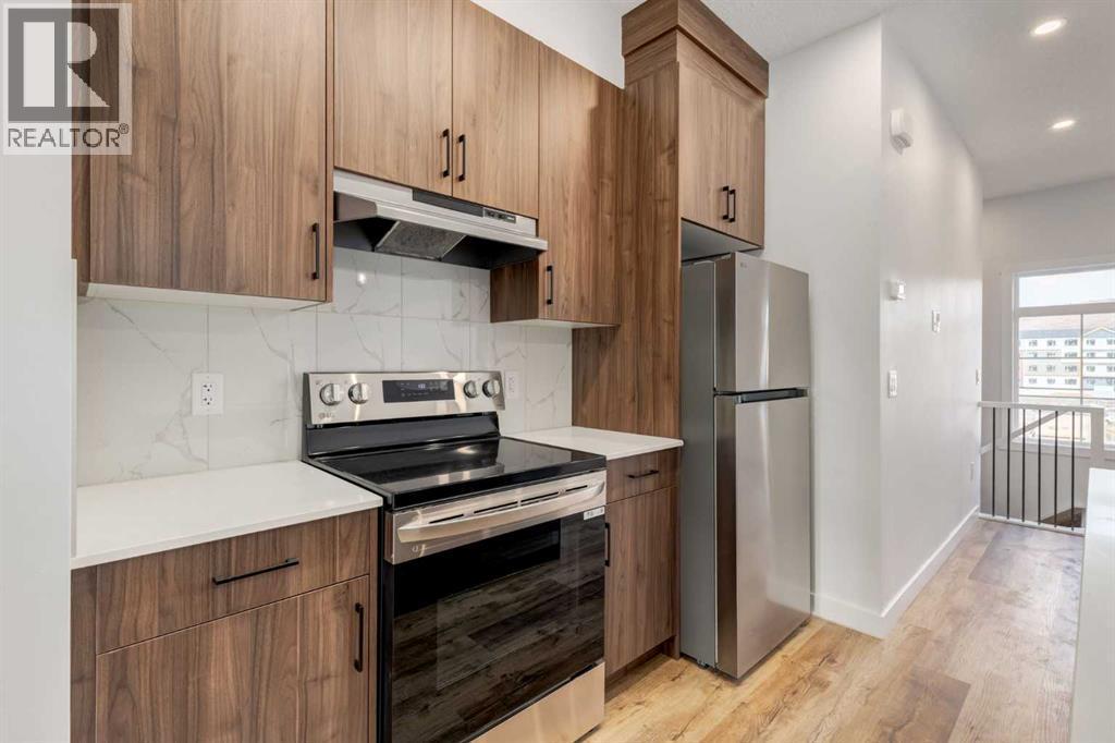 Welcome to the heart of Cochrane, where this beautiful brand-new three-bedroom, two-bathroom home offers the perfect blend of modern living and mountain lifestyle. Ideally located directly across from the community recreation centre and outdoor fitness facility, this home sits in one of Cochrane’s most desirable new, walkable communities—designed to keep nature, convenience, and connection at your doorstep. Enjoy quick access to local amenities, with Calgary just 20 minutes away and Banff only 40 minutes west.Inside, you are greeted by a bright, open-concept floor plan featuring 9-foot ceilings and luxury wide-plank flooring throughout. The gourmet kitchen is thoughtfully designed with quartz countertops, soft-close cabinetry, premium stainless steel appliances, and a large island ideal for entertaining or casual dining. The home offers three spacious bedrooms and two full bathrooms, each finished with modern fixtures, stone tile flooring, and matching quartz vanities.Additional highlights include a single attached garage plus an extra parking pad, providing ample space for vehicles and guests. Step outside to your private balcony and enjoy peaceful views overlooking the water and amazing mountain views, or take advantage of the brand-new pickleball courts and rec center located just across the street. You will enjoy easy access to restaurants, cafés, shopping, Co-op grocery store—truly everything you need, right where you want to be. This property is perfect for you to move into or as a rental with Cochrane's growing and strong rental market. Air bnb is also an option with condo board approval. Book your showing today!! (id:6769