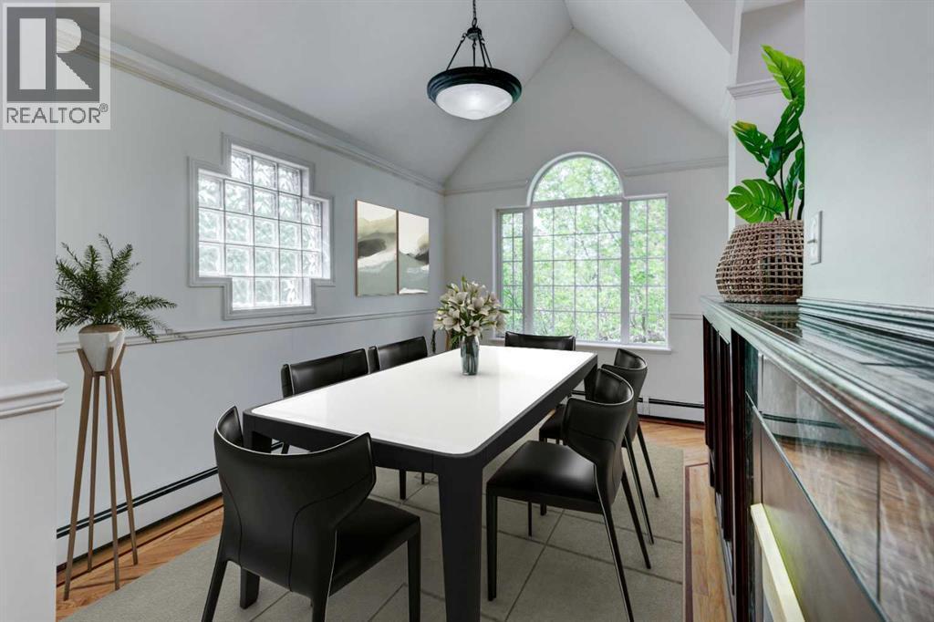 Welcome to a truly one-of-a-kind, New York-style walk-up penthouse located in the highly desirable inner-city community of Windsor Park—just steps from Chinook Mall, transit, and minutes from downtown Calgary. Boasting over 2,000 sq ft of luxurious living space across two stunning levels, this updated home combines architectural elegance, thoughtful design, and unmatched outdoor space. Inside, you're greeted by soaring vaulted ceilings, expansive windows, and an open-concept layout drenched in natural light. The gourmet kitchen is a chef’s dream, featuring custom oak cabinetry, newer stainless steel appliances, a built-in gas range, and an eat-up breakfast bar—perfect for casual dining or entertaining. Rich hardwood floors with intricate Purple Heart inlay add a sophisticated touch. The spacious living room includes a built-in entertainment unit and a three-sided gas fireplace that seamlessly connects to the formal dining area. Your primary retreat offers custom built-ins, a large walk-in closet connected to the laundry room, and a spa-inspired 5-piece ensuite with a jetted tub and oversized shower. From both the living room and primary suite, step out onto a private, north-facing balcony tucked into the treetops—your own peaceful, treehouse-like escapeUpstairs, an elegant staircase leads to a bright lofted family room overlooking the main floor, a spacious second bedroom, a modern 3-piece bathroom with in-floor heating and a massive steam shower, a den, and a bonus room—ideal for a home office or creative studio. And here's the showstopper: a private 1,500 sq ft rooftop terrace, unlike anything else in the area. Whether you're hosting summer soirées or enjoying peaceful evenings under the stars, this rooftop is pure magic. Additional features include: heated underground parking, oversized storage locker, quiet, professionally managed building with strong financials. Perfect for professionals, creatives, or investors seeking luxury and lifestyle in a premier locati on. (id:6769