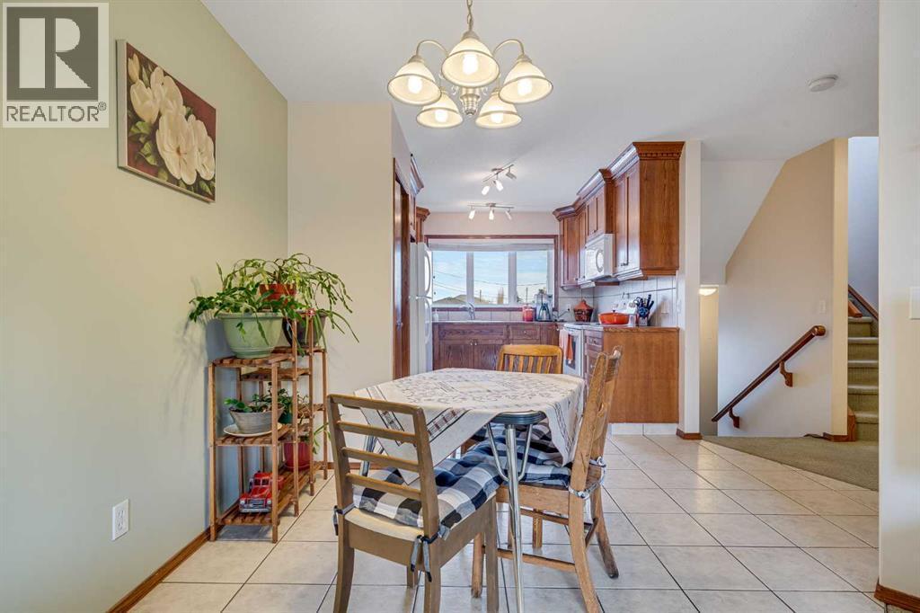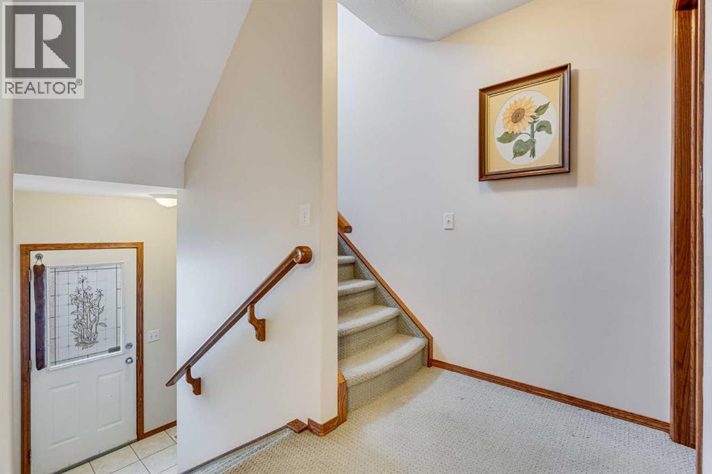 AMAZING FULLY DEVELOPED - 3 BEDROOM - 2.5 BATHS - NO CONDO FEES !! Designed to maximize the living areas with no wasted space this family sized townhome is located in downtown Strathmore within walking distance to shopping and schools. The main floor offers a brightly lit open concept floor plan with a spacious living room that will accommodate a sectional sofa and more. The open ended dining area is positioned between the working kitchen and the living room. An abundance of oak cabinetry boasts plenty of upper and lower cabinets. There is a very large storage area next to the kitchen that can be combined as a walk in pantry and broom closet. A private 2 pc bath is just off the back landing and away from the kitchen area. Upstairs you will find a primary bedroom with a walk in closet and a four piece ensuite bath overlooking the quiet rear yard and an additional two bedrooms that share a four piece bath. The lower level boasts an open family room area and laundry area. Direct access from this level leads to the single attached insulated garage. There is a shed in the fenced rear yard to keep your bikes etc as well as any gardening tools that you might use to maintain the lovely vegetable garden patch behind the shed. Parking boasts one covered garage space, garage pad and also plenty of street parking. Enjoy the benefits of home ownership in this fantastic townhome with quick possession. Call your favorite realtor today. ' (id:6769