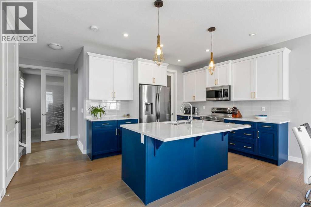 OPEN HOUSE. January 24th, 1.00-3.00pm. Welcome home to this bright, beautifully upgraded 3-bedroom gem in the heart of Sunset Ridge! Perfectly set on a spacious corner lot with plenty of extra parking, this home immediately impresses with its 9’ ceilings, rich engineered hardwood floors, and an abundance of natural light streaming through the large main-floor windows. Step into the open-concept main level, where the gourmet kitchen takes center stage with its premium builder’s appliance package, striking quartz island, and sleek matching quartz counters in both the ensuite and main bath. The sunny dining area flows seamlessly onto your west-facing backyard—an ideal spot to unwind and soak in stunning evening sunsets. The great room offers a warm and welcoming atmosphere, complete with a modern electric fireplace. A versatile main-floor flex room with elegant 8-foot double doors adds even more comfort and functionality—perfect for a home office, play space, or creative studio.Head upstairs to find a bright and spacious bonus room, perfect as a second family hangout or homework hub. The primary suite feels like a private retreat, featuring a spa-inspired 5-piece ensuite and a generous walk-in closet. Two additional bedrooms and a beautifully finished main bath complete this thoughtfully designed upper level. Located just blocks from RancheView K–8 School and a short drive to St. Timothy High School, this home is surrounded by convenience, with a future community centre and additional school planned nearby—ideal for a growing family. Enjoy being only 30 minutes from Calgary, 45 minutes to the airport, and just a scenic 40–45 minute drive to the mountains for your weekend getaways. This is an incredible opportunity to own a beautifully upgraded home in a vibrant, family-friendly community. Come see it for yourself—book your showing today. (id:6769