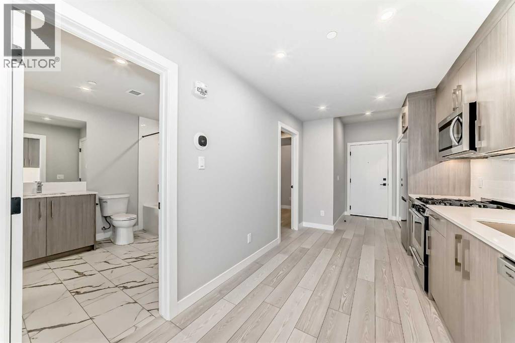 Welcome to Frontier by Truman – Brand New 2 Bed, 1 Bath Condo in the Heart of Kensington!Discover the ideal mix of modern design and city living in this brand-new 2nd floor unit located in one of Calgary’s most walkable and vibrant communities. Just steps from Kensington’s popular cafés, restaurants, boutique shops, and minutes from the Bow River pathways and downtown.This spacious 2-bedroom, 1-bathroom condo features an open-concept layout with a chef-inspired kitchen, quartz countertops, stainless steel appliances, and a bright living area that opens onto a private balcony with gas BBQ hookup.Both bedrooms are generously sized—perfect for a home office, guest room, or shared living. The elegant 4-piece bathroom is finished with premium materials and a modern design.Additional Features:Private balcony with views & gas BBQ hookupUnderground titled parking stallSecure storage lockerAccess to a private landscaped terraceState-of-the-art fitness centreStylish co-working spacesSecure underground bicycle storageSame-floor garbage chute for convenienceLow-maintenance living, and unmatched location make this home perfect for first-time buyers, professionals, or investors.Don’t miss your opportunity to own in Frontier—book your private showing today! (id:6769