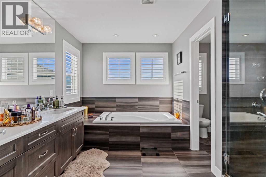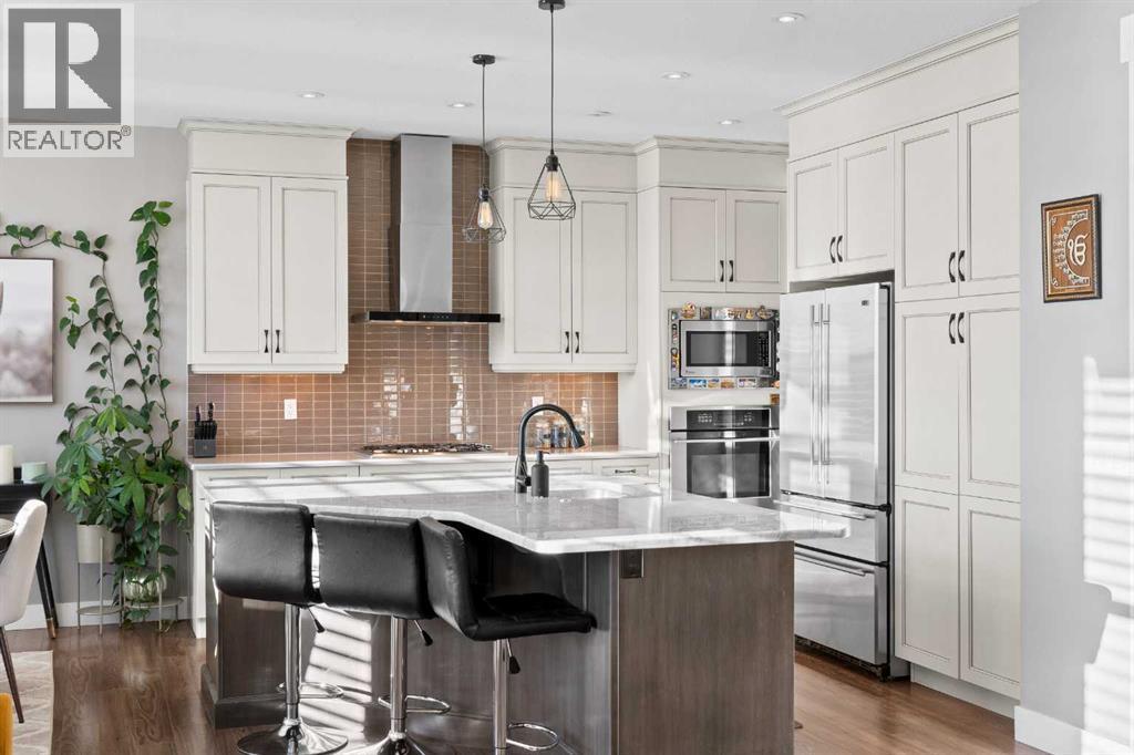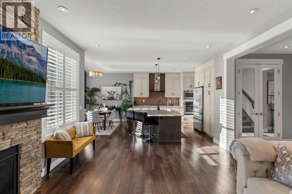 Open House Jan 25, 2–4 PM. Welcome to your dream home, perfectly situated on a massive pie-shaped lot backing onto green space and a scenic pond with breathtaking sunset views. This exceptional two-storey home with a walk-out basement offers over 3,800 sq. ft. of fully developed living space and is filled with high-end upgrades throughout.The main level showcases vaulted ceilings, expansive windows with Hunter Douglas shutters, engineered laminate flooring, knockdown ceilings, upgraded lighting, and elegant spindle-railed staircases. A private den provides the ideal home office, while the impressive formal dining room easily accommodates large gatherings and is highlighted by a striking chandelier.The open-concept kitchen is a chef’s dream, featuring a massive quartz island, built-in stainless steel appliances, pendant lighting, a coffee bar, spacious pantry, and a casual dining area. The inviting living room is anchored by a floor-to-ceiling stone gas fireplace, creating a warm and stylish focal point. Step outside to the oversized deck and enjoy peaceful views of the pond and green space, perfect for relaxing evenings and entertaining.Upstairs, you’ll find a generous bonus room, three spacious bedrooms, and two full bathrooms. The expansive primary retreat includes a walk-in closet and a luxurious ensuite with double vanities, a fully tiled soaker tub, and a glass-enclosed shower.The fully developed walk-out basement is ideal for both entertaining and everyday living, featuring a large recreation area with wet bar, perfect for movie nights, a built-in pet wash station, space for a home gym, an additional bedroom, and a full bathroom. Walk out to the backyard and enjoy cozy nights by the fire while overlooking the tranquil green space and pond.Located close to parks, walking paths, a skate park, and pickleba ll courts, this home offers the perfect blend of luxury, lifestyle, and location.Book your private showing today—this rare opportunity won’t last long! (id:6769