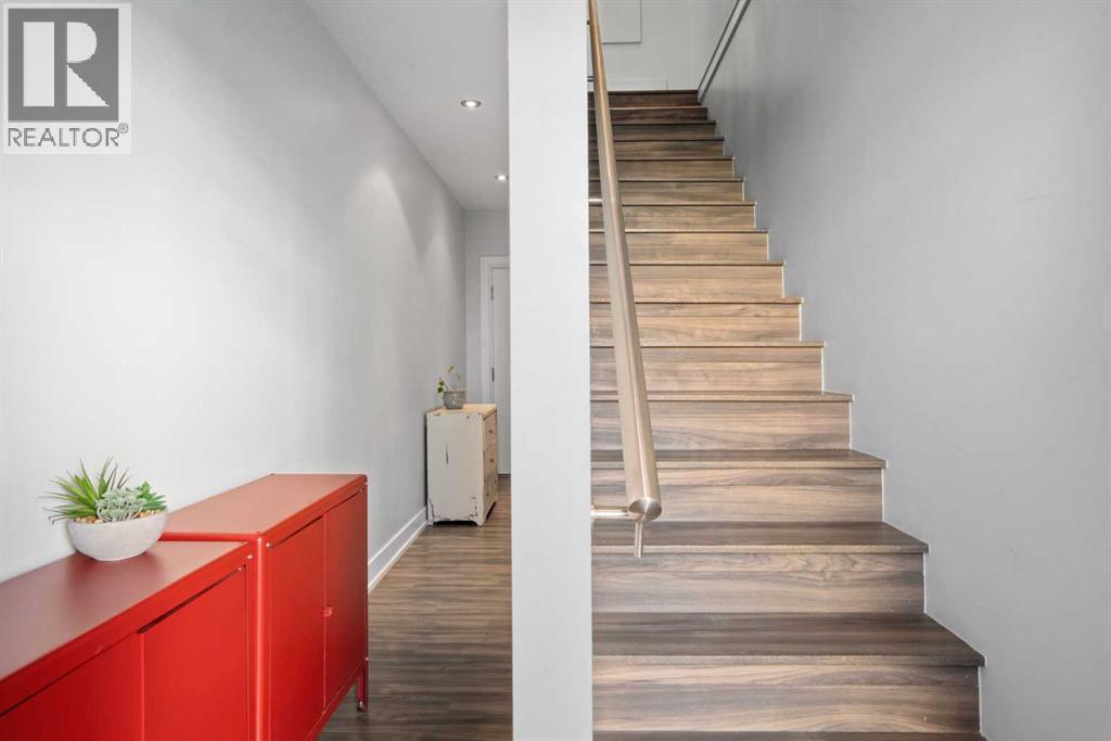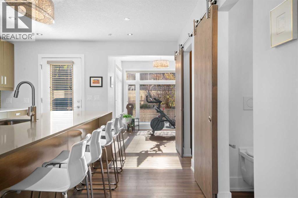 This stylish and sun-filled townhouse in Bankview offers the perfect blend of modern design, functional space, and unbeatable value. Featuring two heated and secure underground parking stalls, this home stands out with thoughtful upgrades and a layout ideal for both everyday living and entertaining. The open-concept main floor is anchored by soaring 9-foot ceilings and durable laminate flooring throughout. A spacious living room offers plenty of room to relax or host guests, while the kitchen is a true showpiece with a large waterfall quartz island, undermount sink, stainless steel appliances, gas range, and a deep pantry with both open and closed storage. The adjacent dining area is surrounded by two walls of south-facing windows, filling the space with natural light. Just outside, a shared patio with gas hookup creates a perfect spot for summer evenings and weekend lounging. A convenient two-piece bathroom completes the main level. Upstairs, both bedrooms are generously sized and feature their own private ensuite bathrooms and built-in wardrobes. The primary suite is oversized with excellent storage and a sleek 4-piece bath. The secondary bedroom features a five-piece ensuite, additional closet space, and its own private south-facing balcony overlooking the courtyard. The upper level also includes the laundry machines, conveniently located near both bedrooms for added ease and efficiency. With secure underground parking, modern finishes, and a location close to transit, shopping, parks, and the university, this home is the total package. Monthly condo fees include everything except electricity, offering true peace of mind in this turnkey property. (id:6769