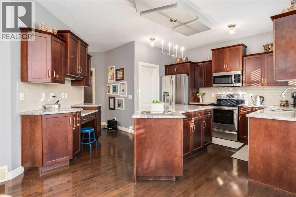 Welcome to this beautifully appointed estate home in the heart of Tuscany located on a low traffic treed boulevard, offering the perfect blend of comfort, elegance, and function for family living. As you step inside, you are greeted by a front office space, ideally positioned for working from home or homework time, and warmed by a charming double-sided fireplace that flows seamlessly into the spacious living room. The open-concept main floor is designed for connection, featuring a stunning kitchen with a large island, granite countertops, stainless steel appliances, and a walk-through pantry that adds effortless convenience. The bright and airy eating nook is surrounded by large windows that frame the picturesque, fully treed backyard and provide direct access to the back deck—perfect for your morning coffee, family meals, or summer barbecues. The living room shares the double-sided fireplace, creating a cozy gathering space that opens gracefully to both the kitchen and dining area. Completing the main floor is a well-designed laundry/mudroom area offering direct access to the garage. Upstairs, the home continues to impress with a spacious bonus room filled with natural light from stunning skylights, along with dual built-in desk spaces—ideal for studying or remote work. The primary suite is a luxurious retreat, featuring a walk-in closet and a 5-piece ensuite complete with dual vanities, a deep soaking tub, stand-alone shower, and private water closet. Two additional well-sized bedrooms and a full 4-piece bathroom complete the upper level, making it ideal for family living. The fully finished walkout basement adds even more versatility, offering an incredible bar area with dual beverage fridges, display cabinetry, and plenty of counter space for entertaining. This level also boasts a large recreation area that can be customized as a home gym, games room, or additional family room, a stylish 3-piece bathroom, and a generously sized fourth bedroom with ample closet s pace. From here, step directly into the private backyard, surrounded by mature trees that offer beauty and privacy throughout the seasons. The outdoor space includes a cedar sauna and plenty of room for play, gardening, or relaxing in nature. Thoughtfully designed and located in a highly sought-after area of Tuscany, this home places you close to walking paths, playgrounds, schools, and all the amenities that make this community so desirable. With easy access in and out of the community and its timeless appeal, practical layout, and beautiful natural surroundings, this estate home is the perfect place to create lasting family memories. (id:6769