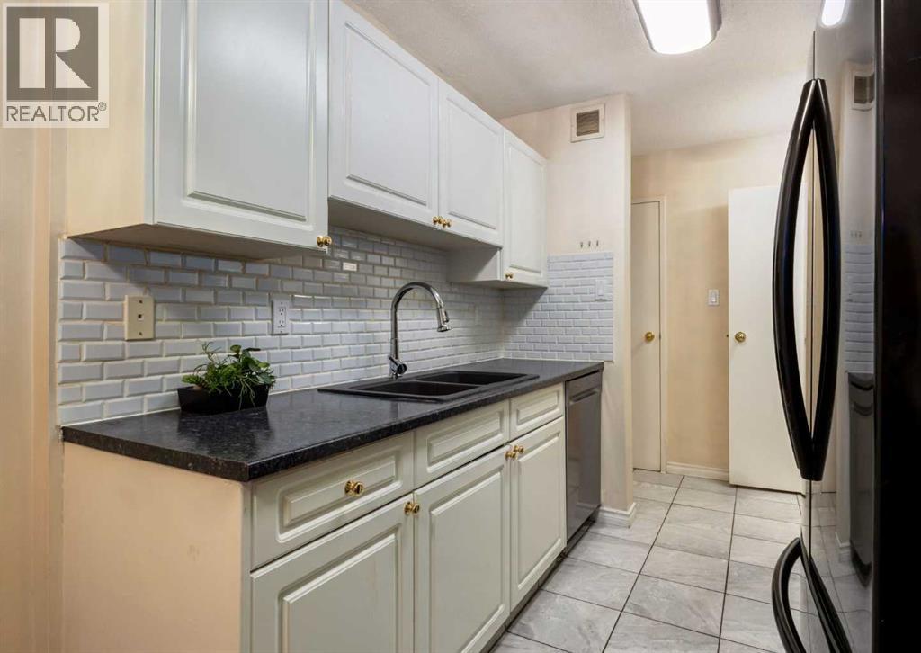 This large, spacious, and bright remodeled main floor unit with wide plank and tile flooring throughout, updated lighting and white cabinetry accented with dark features has modern appeal. The home is equipped with insuite laundry hook-ups. The open-concept layout seamlessly integrates the dining area with the living room, resulting in a vast, inviting space that is perfect for relaxation and entertaining. The kitchen has been updated with white cabinetry paired with dark countertops and is complemented by a white tile backsplash. Floor-to-ceiling vinyl windows and a sliding door allow abundant natural light to fill the home. With no neighboring units directly across, you can comfortably leave the curtains open. The generous primary suite is spacious enough to accommodate a king-size bedroom suite and includes a large closet. The four-piece bathroom has been remodeled, featuring a white vanity, dark countertop, and attractive décor tile in the shower. Install insuite laundry, or use the common laundry facilities on the second floor. The building provides both elevator and stair access for ease of movement. There is a wide array of amenities designed to enhance leisure and social activities. Enjoy the outdoor pool, sauna, recreation room with a billiard table, and tennis courts. Situated in a highly desirable location, the unit is within walking distance of Heritage LRT, local shops, and eateries. Glenmore Reservoir, Heritage Park, Glenmore Landing, and The Rockyview Hospital are just minutes away. Haysboro offers a quick commute to downtown and is connected to the city's pathway system. Affordable, convenient city living! (id:6769