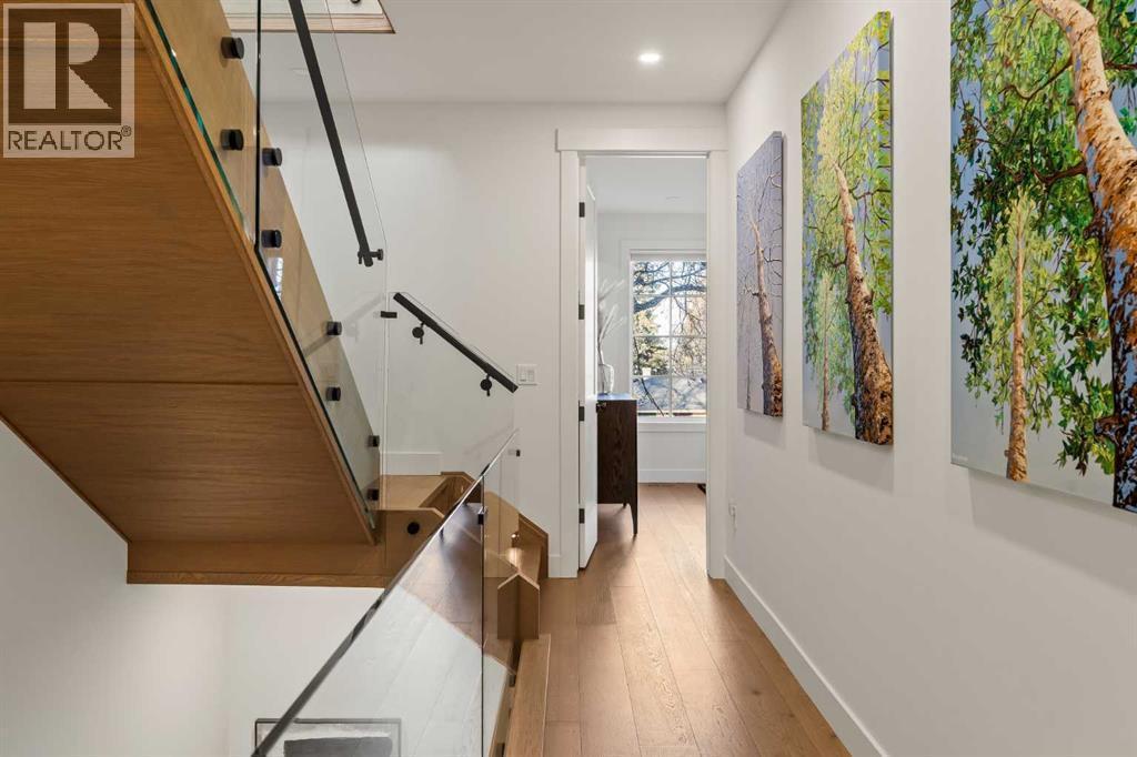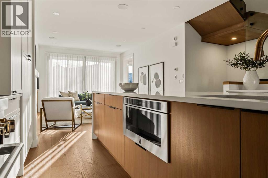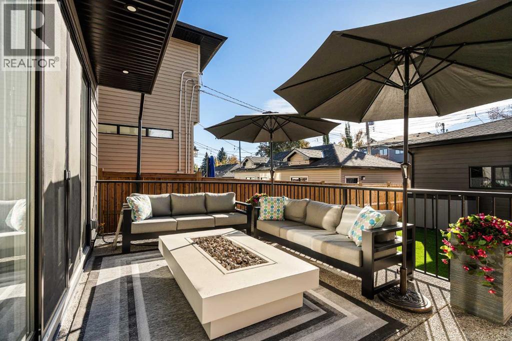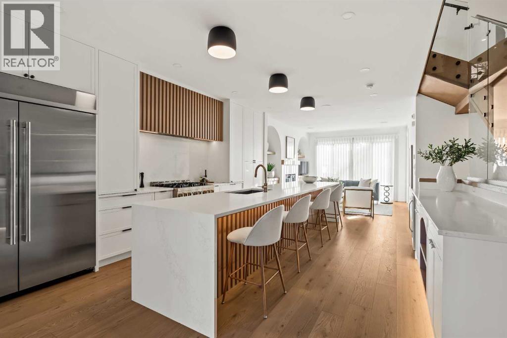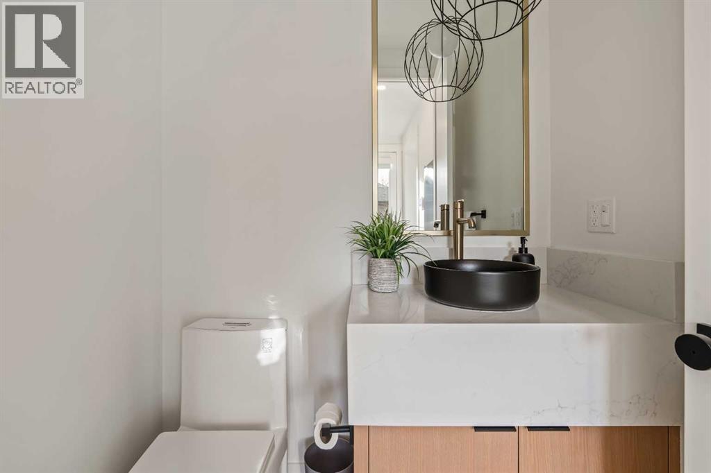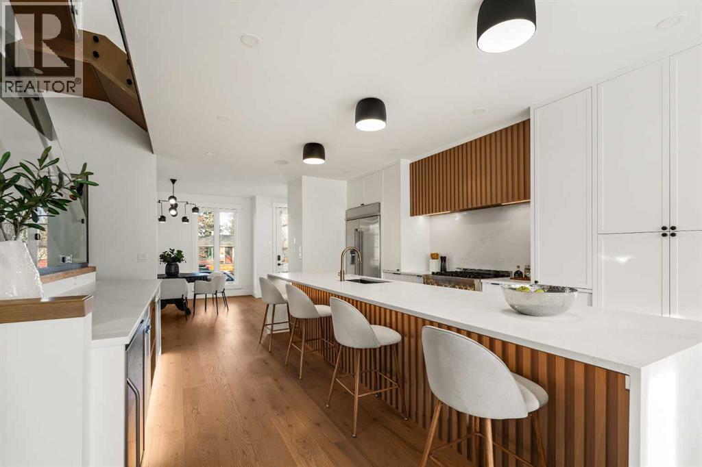 Stunning luxury 3-storey semi-detached residence offering 4 bedrooms, 4.5 bathrooms, a private south-facing backyard, fully air conditioned & ideally located in the heart of highly sought-after Altadore. Showcasing exceptional curb appeal with a gorgeous front elevation, this modern home is filled with natural light from expansive windows & features, thoughtful design & high-end upgrades throughout.The inviting front entry is both stylish & functional, complete with a built-in bench, coat hooks, & smart shoe storage. A front dining room sets the stage for elegant entertaining, while the heart of the home is the extensively upgraded central kitchen, anchored by a large waterfall island. Highlights include full-height cabinetry, deep lower drawers, soft-close hardware, a built-in pantry, & custom hood fan. Premium JennAir stainless steel appliances include a French-door refrigerator, gas range, built-in microwave, garburator & dishwasher. Across from the island, additional built-in cabinetry & counter space feature a beverage cooler.The rear living room is warm & refined, centred around a gas fireplace with recessed built-ins & custom millwork. Ten-foot-wide sliding patio doors open onto a south-facing exposed aggregate deck, seamlessly blending indoor & outdoor living. A spacious rear mudroom offers a closet, bench, & coat hooks, along with a private powder room featuring a vessel sink & sleek linear mirror.The second level includes the primary retreat featuring a generous bedroom & a spa-inspired 5-piece ensuite with a freestanding soaker tub surrounded by floor-to-ceiling tile, heated floors, a custom walk-in glass steam shower with rainfall shower head & built-in bench, dual vanity, & a walk-in closet with custom organizers, drawers, and a full-height mirror. Two additional bedrooms, complemented by a beautiful 4-piece bathroom & a thoughtfully designed laundry room with abundant cabinetry, counter space, & sink.The third level offers incredible flexibility wi th a bright loft-style bonus room featuring a built-in media centre & wet bar with beverage cooler, a separate home office, a full four-piece bathroom, & access to a private south-facing balcony. This level can also easily function as a studio-style 5th bedroom.The fully developed lower level is equally impressive, featuring a family room with wet bar & custom cabinetry, a 10-foot-wide glass-enclosed home gym with rubber flooring, a 4th bedroom, & a 3-piece bathroom. This level is roughed-in for in-floor heating. Built-in speakers are installed throughout the home & centrally wired to the mechanical room, & the property is also roughed-in for a central vacuum system.Outside, the backyard has been upgraded with turf for low-maintenance living, while the deck offers the perfect space for outdoor furniture. Altadore remains one of Calgary’s most desirable inner-city communities, offering quick access to Glenmore Athletic Park, Marda Loop, River Park off-leash, Sandy Beach, schools and more! (id:6769