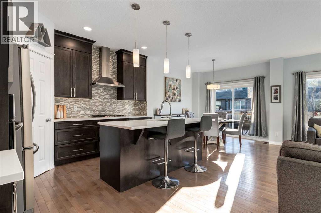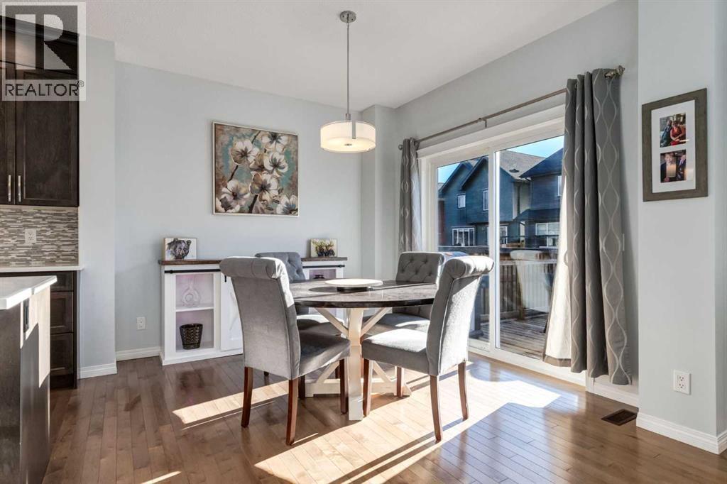 OPEN HOUSE: Saturday January 24th between 1-3pm. Welcome to this beautiful two storey home located in the desirable community of Sunset Ridge. This fully finished detached home offers over 2500sq ft of developed living space, featuring four bedrooms and three and a half bathrooms, perfect for families of all sizes. A bright, open-concept main floor showcases hardwood flooring and expansive windows that fill the space with natural light. The well appointed kitchen boasts dark maple cabinetry, gas cooktop, quartz countertops, stainless steel appliances with built-in microwave and oven, and a spacious walk-in pantry. The adjacent dining area opens to sliding patio doors leading outside to the fully landscaped, south-facing backyard, complete with a two-tiered deck; ideal for entertaining, relaxing, or enjoying sunny afternoons. An inviting living room features an electric fireplace framed by a stone surround, adding warmth and character to the space. Completing the main level is a convenient two-piece bathroom and direct access to the double attached garage. Upstairs, enjoy a spacious bonus room with vaulted ceilings, perfect for movie nights or family game nights. The primary suite is a true retreat, offering a luxurious five-piece ensuite with soaker tub, separate shower, double vanity, and a generous walk-in closet. Two additional bedrooms, a full bathroom, and convenient upper-floor laundry complete this level. The fully developed basement adds even more living space, featuring a recreation area, wet bar, three-piece bathroom, and an additional bedroom with a murphy bed; ideal for guests or a home office. Designed with sustainability in mind, this home is solar-ready for future energy efficiency and cost savings. Located just a short walk to the K–8 school and steps from parks and scenic pathways. Everyday conveniences, including a gas station, pub, and corner store, are close by, while quick access to Calgary and the Rocky Mountains adds to the appeal. Offering t he perfect blend of comfort, style, and convenience, this is a fantastic opportunity in one of Cochrane’s most sought-after communities. Don’t miss out on this exceptional home! (id:6769