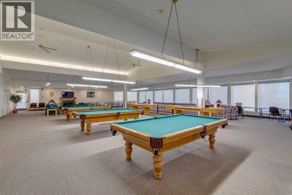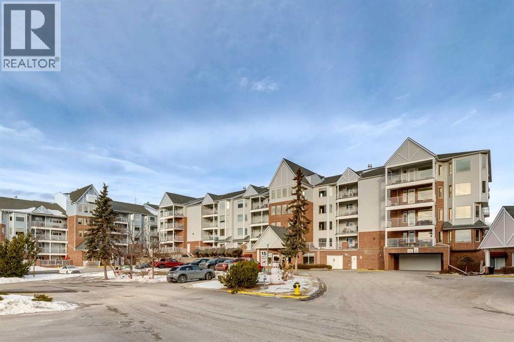 Welcome to 2309 Hawksbrow Point NW, located in Dreamview Village, a highly sought-after 55+ community in the desirable NW Calgary neighbourhood of Hawkwood. This well-managed complex is known for its beautifully landscaped grounds featuring a private park, pond, fountain, and well-lit walking paths, creating a peaceful and welcoming environment.This bright corner unit offers an abundance of natural light and a comfortable, functional layout. The open living and dining area is warm and inviting, ideal for everyday living or entertaining. The kitchen features oak cabinetry, generous counter space, and room for a small dining table.The spacious primary bedroom is a standout, offering exceptional storage with a large walk-in closet plus his-and-hers closets. A second well-sized bedroom with a large window provides flexibility for guests, hobbies, or a home office. In-suite laundry and additional storage add everyday convenience.Residents enjoy access to an impressive clubhouse with mountain views, library, party room with full kitchen, pool table, shuffleboard, craft rooms, and frequent social activities. The building also offers titled underground parking, a storage locker, guest suites, car wash, workshop, elevators, and ample visitor parking.A fantastic opportunity for comfortable, low-maintenance living in one of NW Calgary’s most desirable adult communities. (id:6769