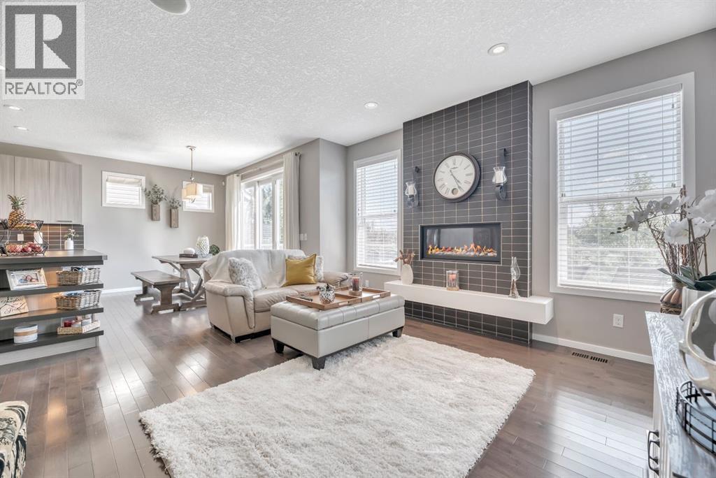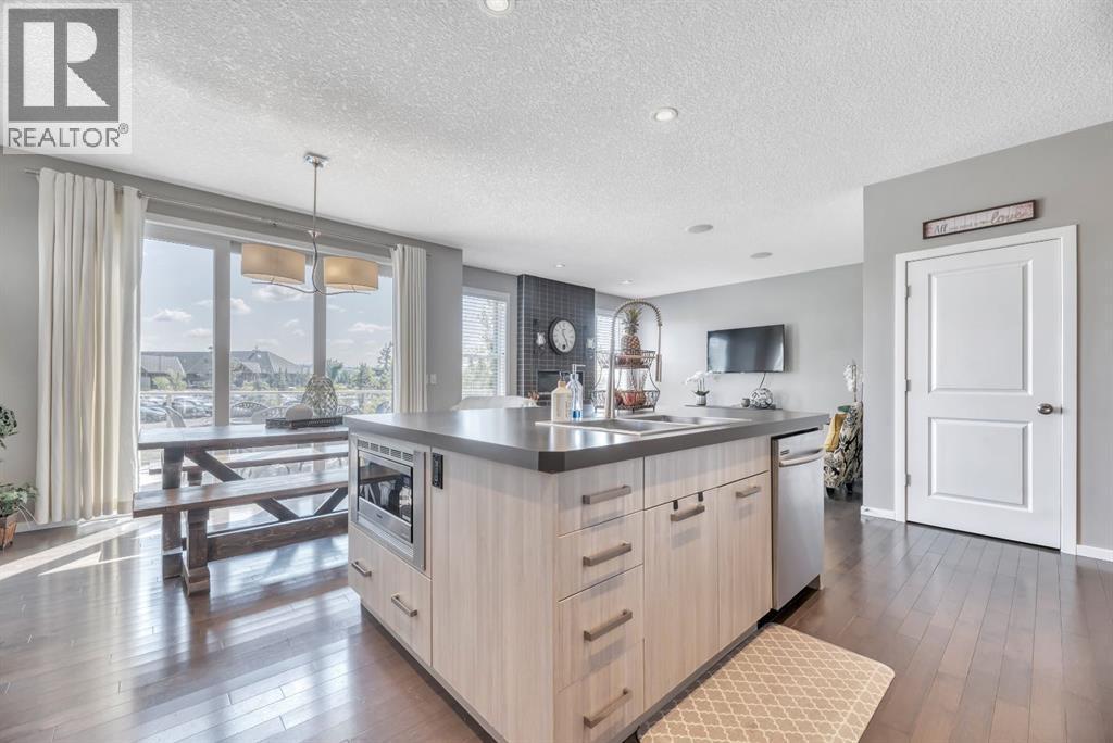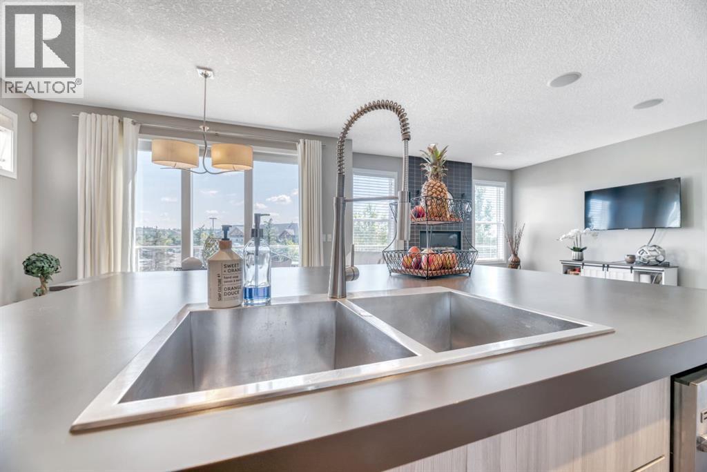 Welcome to a stunning WALKOUT and FORMER SHOWHOME BACKING ONTO the Blue Devil Golf Course that can be enjoyed from the FULL DECK spanning the entire width of the home along with the eating area, great room, the walkout level with CONCRETE PATIO, and the peaceful primary bedroom. The home is over 2200 sq. ft. and features a front flex room, large enough to have a dining table or make a great office with elegant COFFERED ceilings. Gleaming maple HARDWOOD floors, POTLIGHTS galore, and a big, bright MODERN KITCHEN featuring an island for prep with lighted accent shelving and a pantry wall - loads of cabinetry! The spacious primary features a tray ceiling, comfort height vanity with dual sinks, a corner soaker tub and separate shower. The generous walk in closet is conveniently attached to the UPSTAIRS LAUNDRY room. Separating the primary from the two additional bedrooms and secondary full bath is a CENTRAL BONUS ROOM with 2 openings and a niche wall in the hallway. Very cool for a media or play room! Additionally, there is a BUILT IN TECH CENTRE/DESK - so many places for activities! This home comes complete with stainless steel kitchen appliances and front load washer and dryer, BUILT IN SPEAKERS with locations throughout the home, knockdown ceiling texture plus a gorgeous full height tiled FIREPLACE with floating hearth as well as CENTRAL AIR Conditioning and CENTRAL VAC SYSTEM. Appreciate the BRAND NEW WALKOUT basement with 4 pc bath, rec room and sizable bedroom to finish this awesome home! Check out this LOCATION - With Fish Creek Park’s trails and pathways, Lake Sikome, schools, and shopping nearby, this is an unbeatable lifestyle in one of Calgary’s most sought-after communities. This gorgeous, well kept home must be seen! (id:6769
