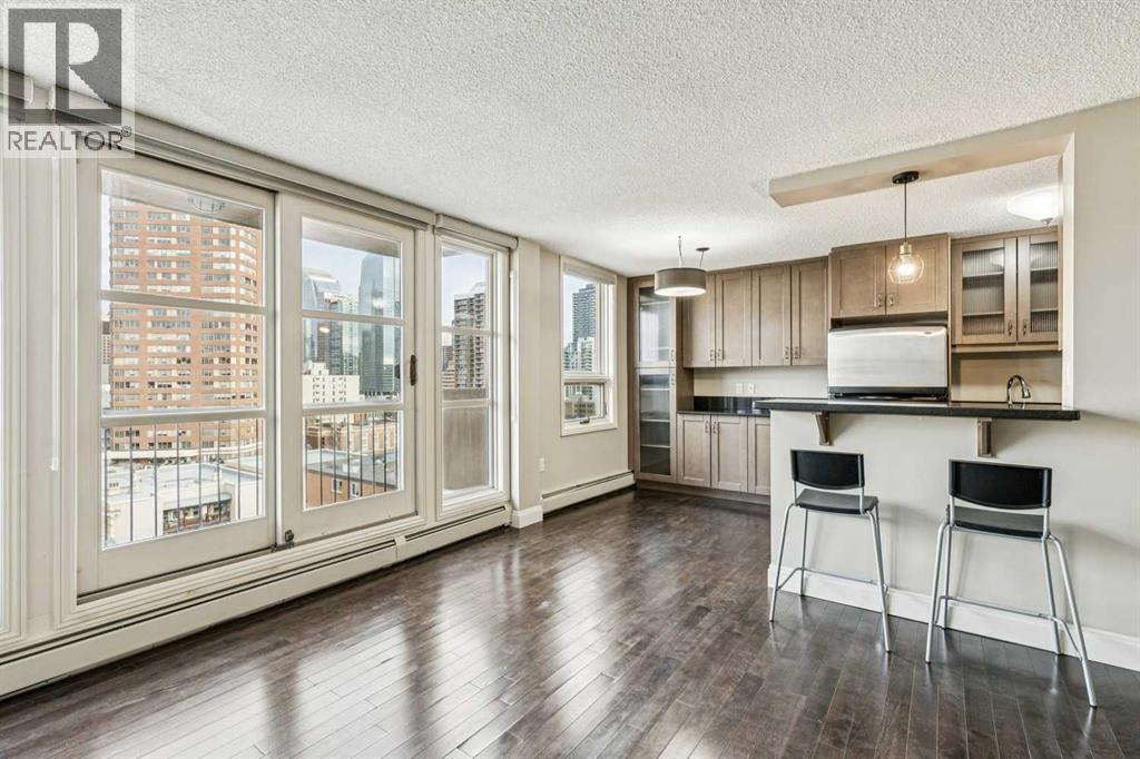 Located in the heart of the Beltline, this 2 bedroom condo at Centro 733 blends smart design with everyday livability. An open floor plan creates an effortless flow for everyday living while hardwood flooring adds warmth and durability for a low-maintenance lifestyle. Floor-to-ceiling windows frame sweeping views of downtown and the Calgary Tower, (brand new roller blinds) drawing natural light deep into the space and creating a dynamic backdrop from morning through evening. An inviting living area encourages relaxed evenings or lively gatherings, with patio doors extending the experience outdoors for a seamless indoor and outdoor lifestyle. A covered balcony becomes an extension of the home, offering space for summer barbeques while overlooking green space, city skylines and iconic tower views that elevate every moment. A dedicated dining area is well positioned for entertaining, with clear sightlines that support easy conversation and connection. A sleek, modern kitchen inspires culinary creativity with Amana stainless steel appliances, full-height cabinetry for efficient storage, stone countertops for everyday durability and a breakfast bar that invites casual meals or social interaction. 2 spacious bedrooms provide flexibility for rest, guests or a home office, while a modern 3-piece bathroom delivers clean lines, new shower and practical comfort. Centro 733 is a concrete building known for its quiet atmosphere and endless amenities including a well-equipped fitness room and a large party room with a full kitchen, ideal for hosting without sacrificing private space. Low condo fees enhance everyday value by including electricity, heat and water. A premier setting directly across from the historic Lougheed House places green space and heritage charm at your doorstep, while vibrant 17th Avenue sits just steps away with its nightlife, diverse boutiques, award-winning restaurants and cafés. Daily conveniences are equally close, with grocery stores, transit access, Me morial Park, the Elbow River pathways and the Talisman Centre all within easy reach, creating a walkable, connected lifestyle perfectly suited to professionals, downsizers or investors seeking function, location and long-term appeal. (id:6769