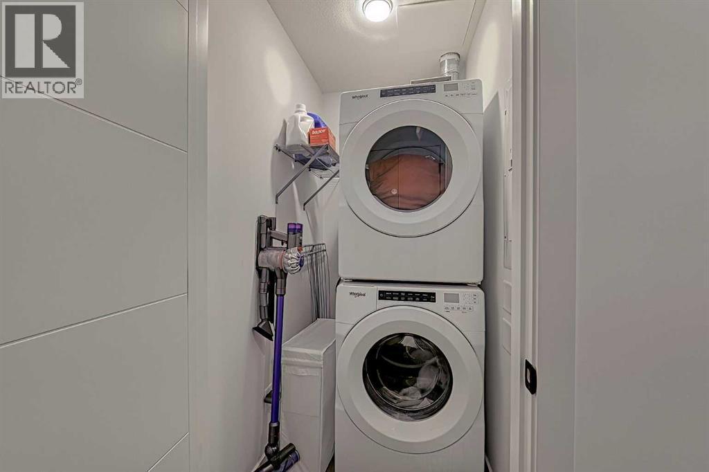 Live in one of Calgary's vibrant neighborhoods; UNIVERSITY DISTRICT! Everything you need at your fingertips; Restaurants, Pubs, Entertainment, Shopping Mall, Parks, Hospitals, etc... This clean, like new, TOP FLOOR unit has luxurious interior finishes, 10 ft high ceilings (only available on the top floor), private covered balcony that's great for year around use, titled parking stall (#21) located close to the elevator, a storage unit (#141) is just across the hall from the unit's door, and a fitness facility on the same floor as the unit. This home's open floor plan combines modern style with comfort; ample storage, stainless steal appliances, gorgeous grey cabinetry, beautiful easy to maintain vinyl plank flooring, the list goes on. The spacious bedroom has a large window and a walk-in closet. The 4-piece bathroom boasts a deep tub (upgraded) and large mirror. The in-suite laundry room has stacked washer dryer with space for storage. The patio is welcoming and covered and there is A/C rough-in. Invite your family and friends to enjoy the common terrace with picnic tables and BBQs or use the meeting rooms that are conveniently located on the 2nd floor of the building. This is a premium location for professionals and students in the area. Enjoy the community parks, outdoor skating rink, shops, restaurants, dog park, and so much more. This unit is move in ready! Let's make it your new home! (id:6769