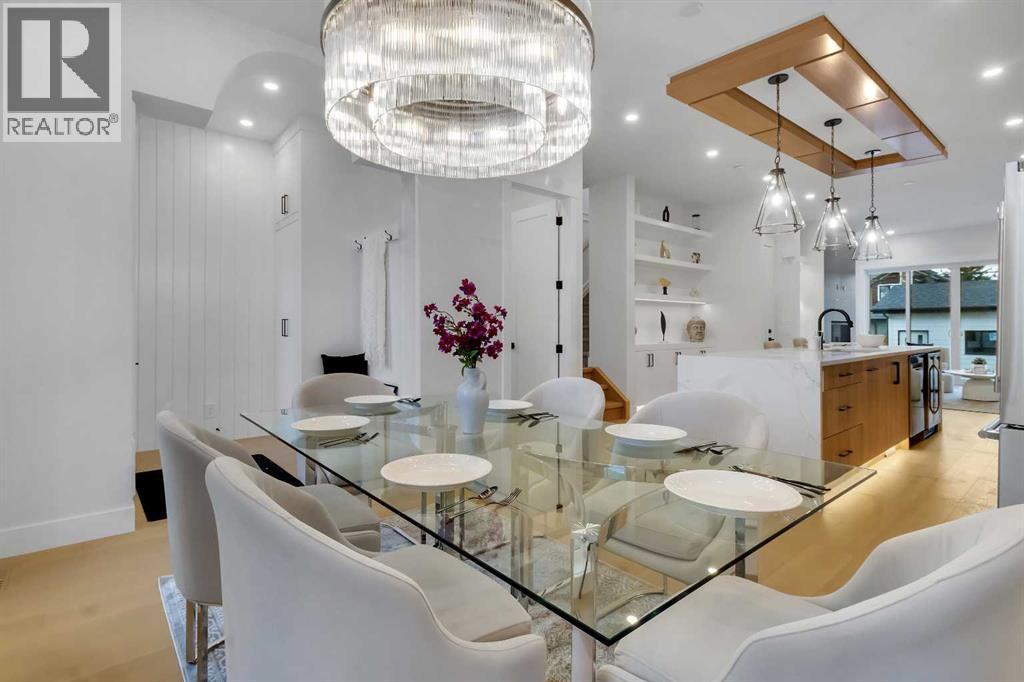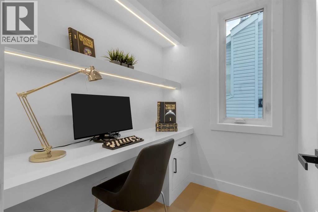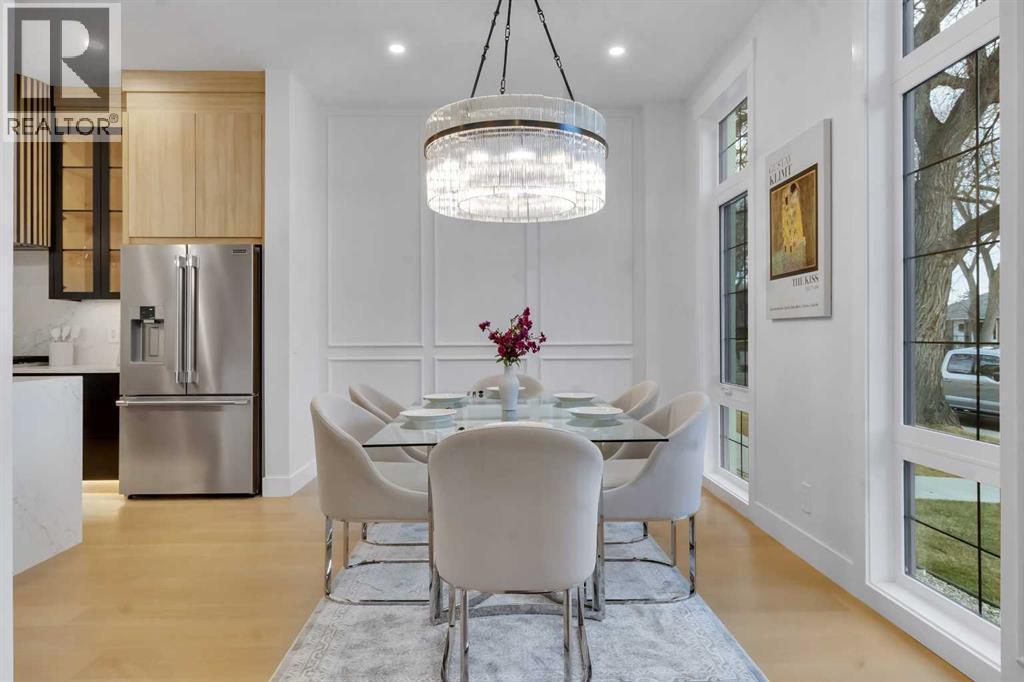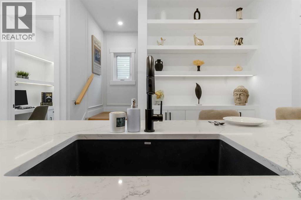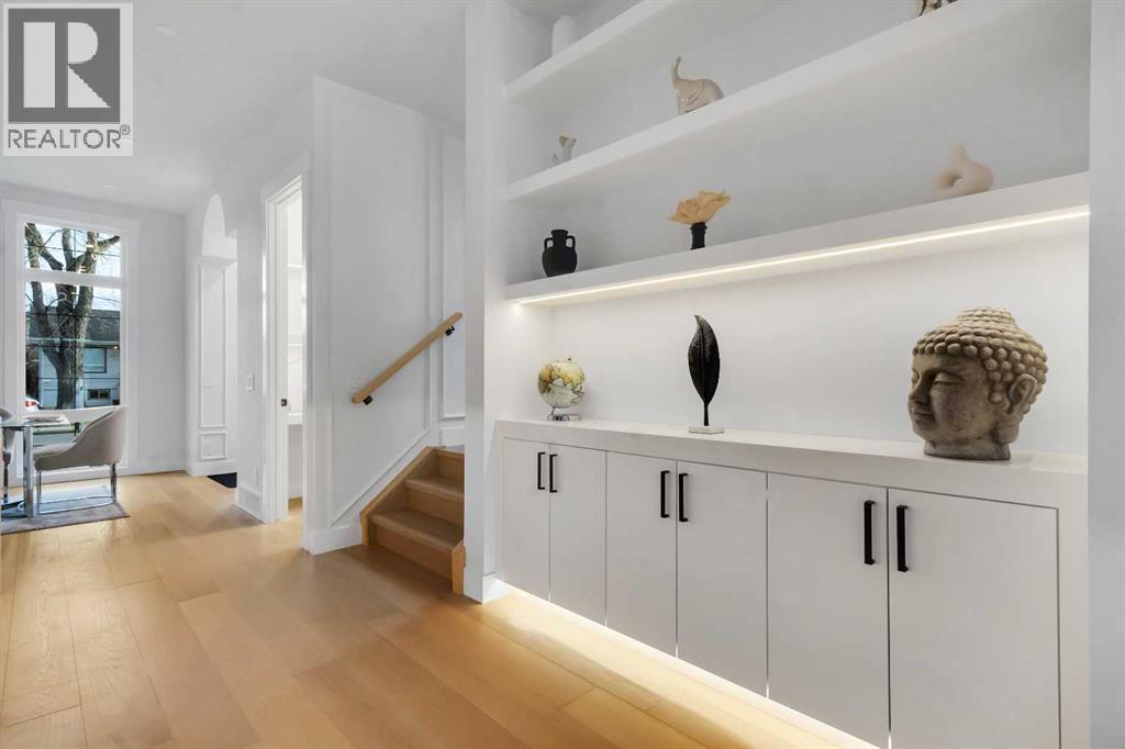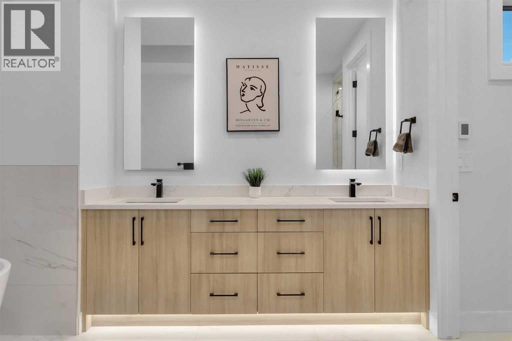 Modern luxury and timeless design come together in this brand new, meticulously crafted infill by Moon Homes, ideally located on a quiet, tree lined street in the heart of Mount Pleasant. Offering thoughtfully curated living across all three levels, this residence delivers elevated craftsmanship, refined architectural detailing, and exceptional functionality just steps from Confederation Park and minutes to downtown. The main floor is defined by soaring 10 foot ceilings, oversized windows, rich hardwood flooring, and custom millwork throughout. A grand arched entry opens to a spacious foyer, setting the tone for the sophisticated interior. The open concept living and dining areas are anchored by a beautifully tiled gas fireplace with custom built ins and a statement chandelier, while large sliding patio doors create seamless indoor outdoor flow to the rear concrete patio, ideal for entertaining. The chef inspired kitchen is a true showpiece, featuring a massive quartz island, premium Frigidaire Professional Series appliances, a custom slat hood fan, bar fridge, and full height cabinetry with extensive pull out storage. Thoughtfully designed LED lighting including under cabinet, toe kick, floating shelf, and glass front upper lighting adds both function and dramatic ambiance. A dedicated pocket office or home workspace and a custom mudroom with built ins are perfectly positioned for modern daily living, complemented by a stylish powder room with a floating vanity and designer lighting. Upstairs, wainscoting continues through a bright, sun filled hallway. The primary retreat is nothing short of exceptional, showcasing nearly 15 foot vaulted ceilings, a fully detailed feature wall, upper transom windows, plush carpeting, and a striking chandelier. The walk in closet offers custom shelving, pull outs, and motion sensor LED lighting. The spa inspired ensuite includes heated tile floors, dual vanities, a freestanding soaker tub, a tiled rainfall shower with bench, ambient mirror and vanity lighting, and a private water closet. Two additional bedrooms each feature walk in closets and share a beautifully appointed four piece bathroom. A well designed upper laundry room includes LG appliances, folding counter, deep sink, cabinetry, hanging rack, and linen storage conveniently located near the bedrooms. The fully finished legal basement suite (pending final inspection) offers a private side entrance and mirrors the quality of the main home. Complete with a full kitchen, spacious living area, modern four piece bathroom, and dedicated laundry with built in sink, this space is ideal for extended family, guests, or future rental income. Finished with a detached double garage and paved alley access, this home is surrounded by top rated schools, parks, pathways, Mount Pleasant Pool, and beloved local amenities, with quick access to major routes and the city core. (id:6769
