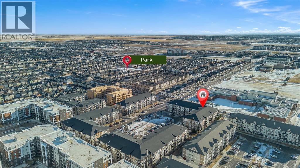 Welcome to this stunning top-floor corner penthouse offering exceptional privacy, natural light, and one of the largest private balconies in the complex. Perfectly designed for both relaxing and entertaining, the expansive 17’ x 7’9” balcony delivers open views and all-day sunshine.Inside, you’ll find a bright and spacious open-concept layout enhanced by oversized windows that flood the home with natural light. The modern kitchen features sleek cabinetry, stone countertops, and stainless steel appliances, seamlessly connecting to the living and dining areas.This well-appointed home offers two large bedrooms and two full 4-piece bathrooms. The primary suite includes a walk-in closet and a private ensuite, while the second bedroom and full bath are ideal for guests, family, or a home office.Additional highlights include in-unit laundry, titled underground parking, and assigned storage for added convenience. Built in 2015, the building showcases contemporary finishes and thoughtful design throughout.Ideally located in the vibrant community of Skyview Ranch, you’re just minutes from parks, schools, shopping, transit, Bus Stop 3 Min Walk and major roadways. This is a rare opportunity to own a penthouse-style unit that truly checks all the boxes. Don’t miss out — welcome home! (id:6769