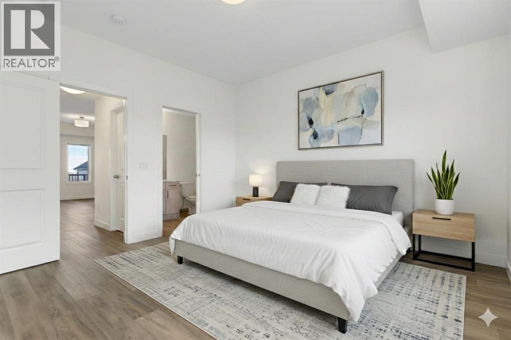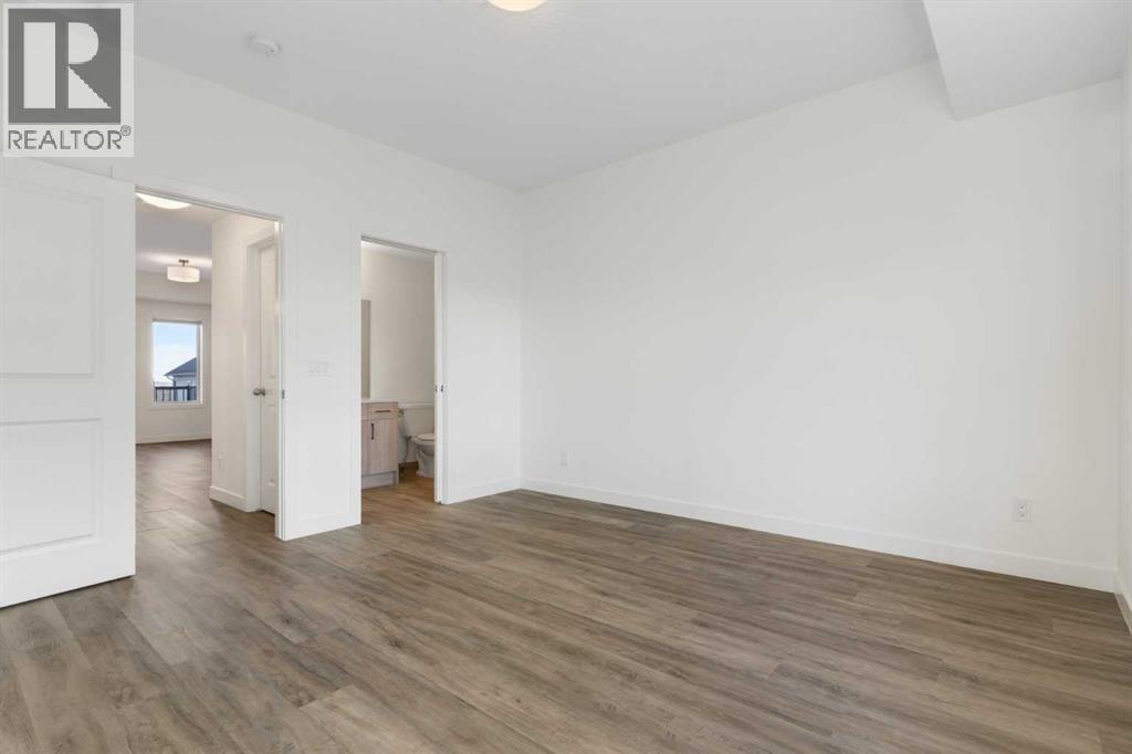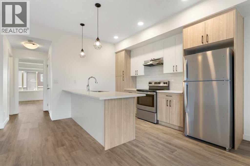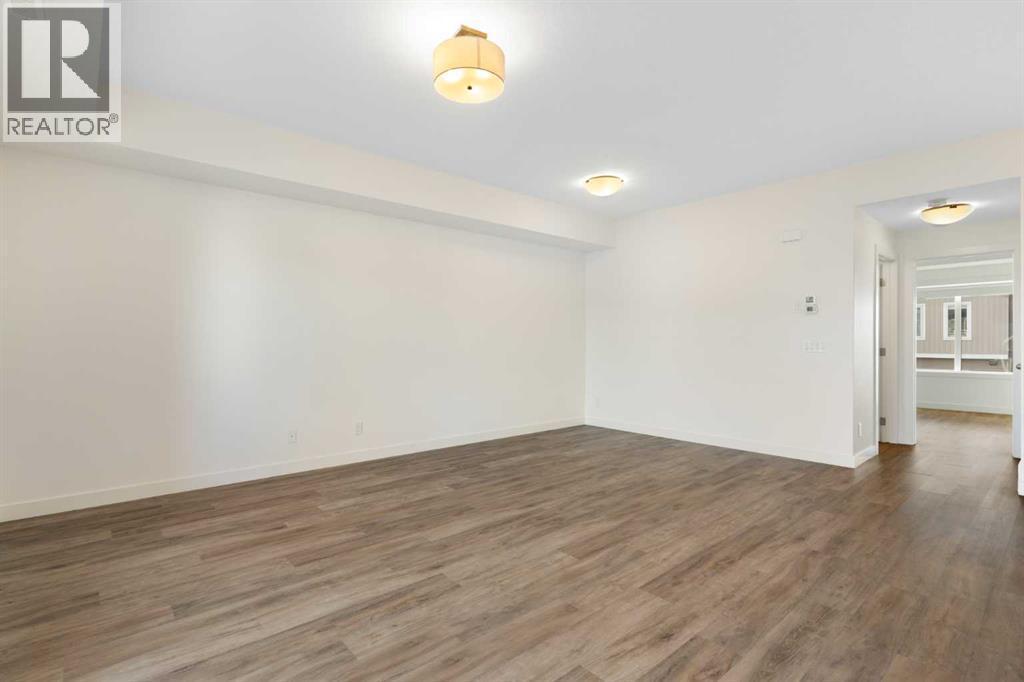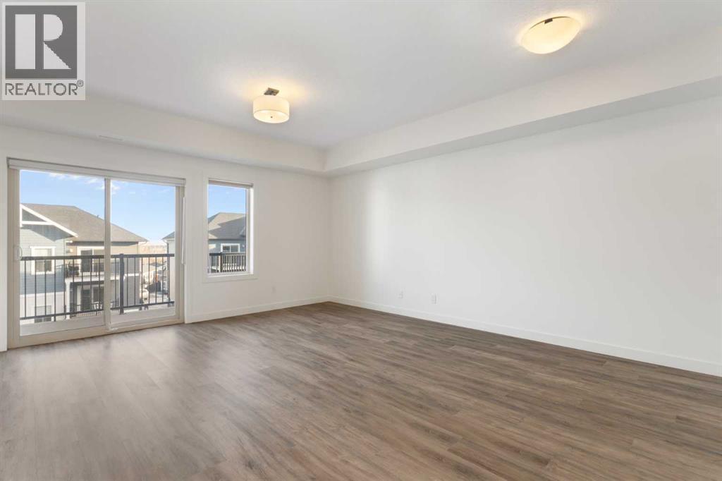 Check out this stunning top-floor stacked townhome that offers the perfect blend of style and function. Ready for immediate occupancy; this 1 bedroom 1 bath unit features over 1200 sq ft of thoughtfully designed living space, with most of the layout conveniently situated on a single level. Step inside and up to the main floor and you will discover an open-concept living area with a full kitchen that's a home chef's dream. The kitchen boasts elegant quartz countertops, soft-close drawers, and stylish two-tone cabinets highlighted by pendant lighting. An adjacent, flexible space is perfect for a spacious dining area or a home office. This home has an oversized bedroom and a full 4pc bathroom that doubles as an ensuite with its second access. A spacious laundry room adds to the convenience. This unique floorplan is designed to feel like a modern apartment but with the added benefits of a main floor storage/flex area and direct access to an oversized, extended single car GARAGE. This home is perfectly situated to offer the best of both convenience and community. It's located right next to a future school site, with transit options directly at your doorstep for effortless commuting. Enjoy a short two-minute walk to Bow Valley High School, and a quick five-minute trip to the Spray Lakes Sports Centre for all your recreational needs. For bigger city amenities, you're only 20 minutes from South Calgary, and the mountains are within easy reach, with Canmore just a 40-minute drive away. (id:6769