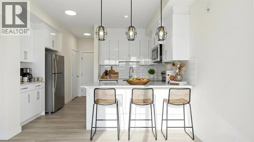 Welcome To This Brand-New, Move-In-Ready 2-Bedroom, 1-Bathroom Condo In The Vibrant And Fast-Growing Skyview Community Of NE Calgary. Thoughtfully Designed For Modern Living, This Bright And Airy Home Features 9-Foot Ceilings And Expansive Windows That Flood The Open-Concept Layout With Natural Light.Wide-Plank Luxury Vinyl Flooring And Quartz Countertops Throughout Create A Sleek, Contemporary Finish. The Fully Upgraded Kitchen Is Both Stylish And Highly Functional, Showcasing Stainless Steel Appliances, An Over-The-Range Microwave, Soft-Close Cabinetry, A Pantry, Quartz Countertops, And A Convenient Breakfast Bar—Perfect For Casual Dining, Working From Home, Or Entertaining. The Kitchen Flows Seamlessly Into The Living And Dining Areas, Offering A Warm And Inviting Space To Relax Or Host Guests.This Unit Features Two Generously Sized Bedrooms And A Modern 4-Piece Bathroom With Quartz Countertops And Refined Finishes. Additional Highlights Include In-Suite Laundry, Upgraded Designer Window Treatments, And A Large Private Balcony With A BBQ Gas Line, Ideal For Summer Entertaining Or Enjoying Fresh Air And Open Views.The Home Is Complete With Titled Surface Parking, A Titled Storage Locker, And Secure Bike Racks, Providing Exceptional Convenience And Value. Located In A Newly Constructed Building, Residents Enjoy Low-Maintenance Living With Easy Access To Shopping, Schools, Public Transit, Major Amenities, Calgary International Airport, And Quick Connections To Stoney Trail For Effortless Commuting Throughout The City.Perfect For First-Time Buyers, Professionals, Or Investors, This Turnkey Condo Offers An Affordable Opportunity To Own In One Of Calgary’s Most Desirable And Rapidly Growing Communities. Why Rent When You Can Own Your Own Home And Start Building Equity? Move In, Make It Yours, And Enjoy The Pride Of Ownership—This Is A Must-See Opportunity.Please Note: Property Taxes Have Not Yet Been Assessed. ***Vacant Property, Some Photos Are Virtually Sta ged To Show Potential Furniture Arrangement. Original Photos Of Empty Rooms Are Also Included.***Additional Units Are Available—Contact Listing Agent For Details. (id:6769