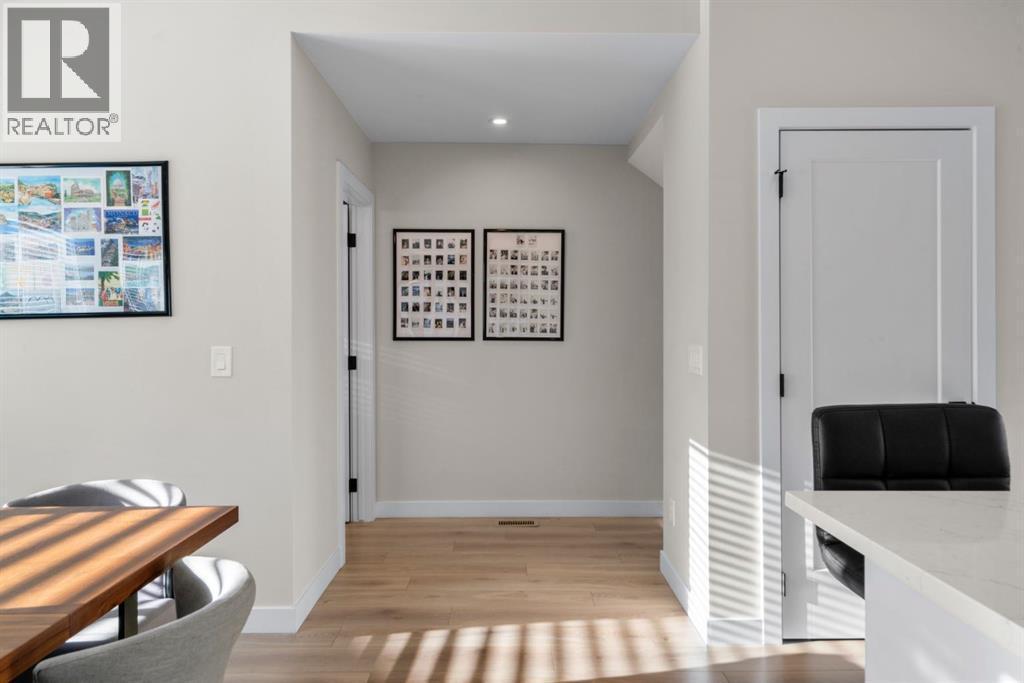 EXCEPTIONAL VALUE IN CALGARY’S PRESTIGIOUS SOUTHWEST! This beautifully maintained former Truman Homes show home showcases elevated design, premium finishes, and thoughtful upgrades throughout. Welcome to this stunning three-storey brick townhome, thoughtfully designed for modern living and timeless style. This residence features a custom gourmet kitchen, an expansive owner’s retreat with a spa-inspired ensuite, central air conditioning, a heated double attached garage, a covered balcony, and refined details at every turn. Additional highlights include wrought iron railing accents and a striking 46-inch electric fireplace.The walk-up front entrance provides a warm, street-facing welcome designed for a variety of lifestyles, picture crisp mornings with coffee in hand as you step out to nearby parks, scenic pathways, and local favourites.Inside, a spacious foyer and convenient access from the oversized heated double attached garage set the tone with ample room for daily essentials. This level also offers a versatile bedroom or home office, ideal for guests or working from home. The second level showcases the heart of the home with an open-concept kitchen, dining, and family area designed for both comfort and sophistication. The chef-inspired kitchen impresses with a large quartz island, continuous quartz backsplash, gas range, built-in microwave, and panelled refrigerator for a seamless, upscale finish. Step onto the covered balcony just off the dining area, perfect for year-round grilling and relaxing.The upper level hosts dual primary suites, each complete with walk-in closets and private spa-style ensuites, along with a convenient upper-floor laundry room. Durable laminate flooring flows throughout, while matte black lighting and hardware create a cohesive, contemporary aesthetic.Experience the perfect blend of luxury, location, and lifestyle in one of Calgary’s most desirable communities. (id:6769