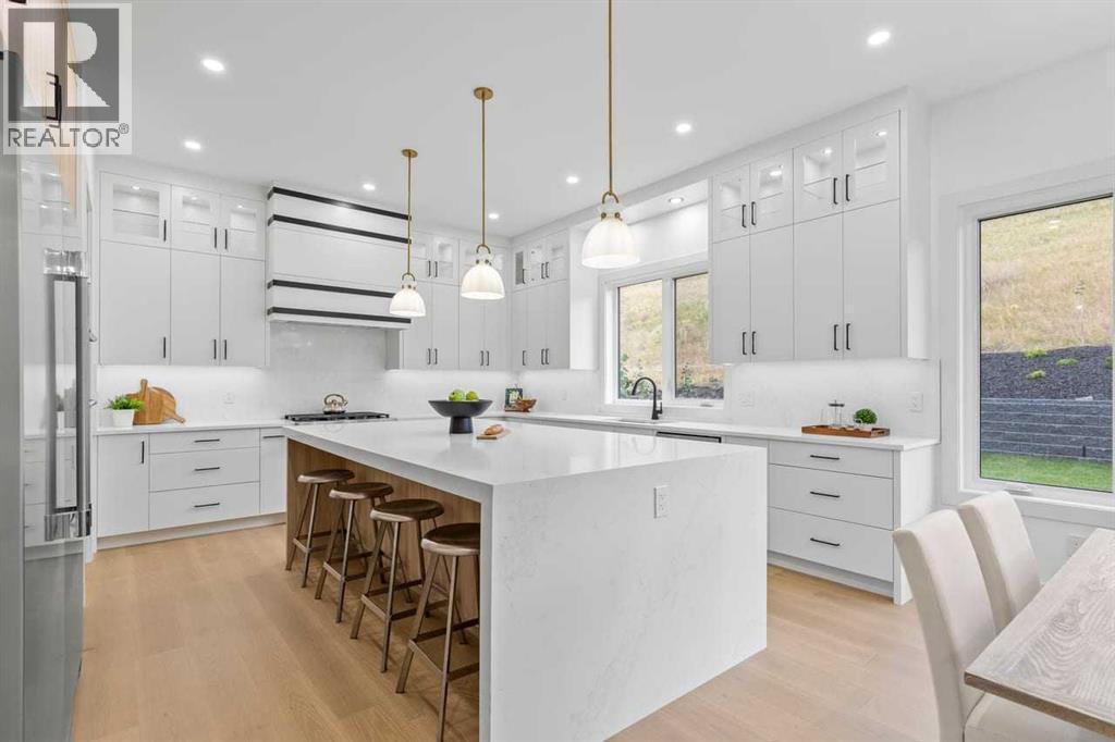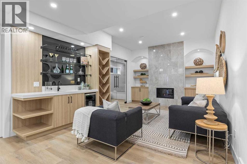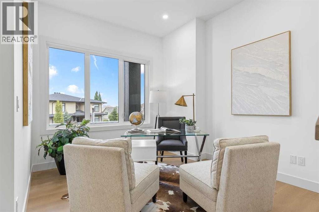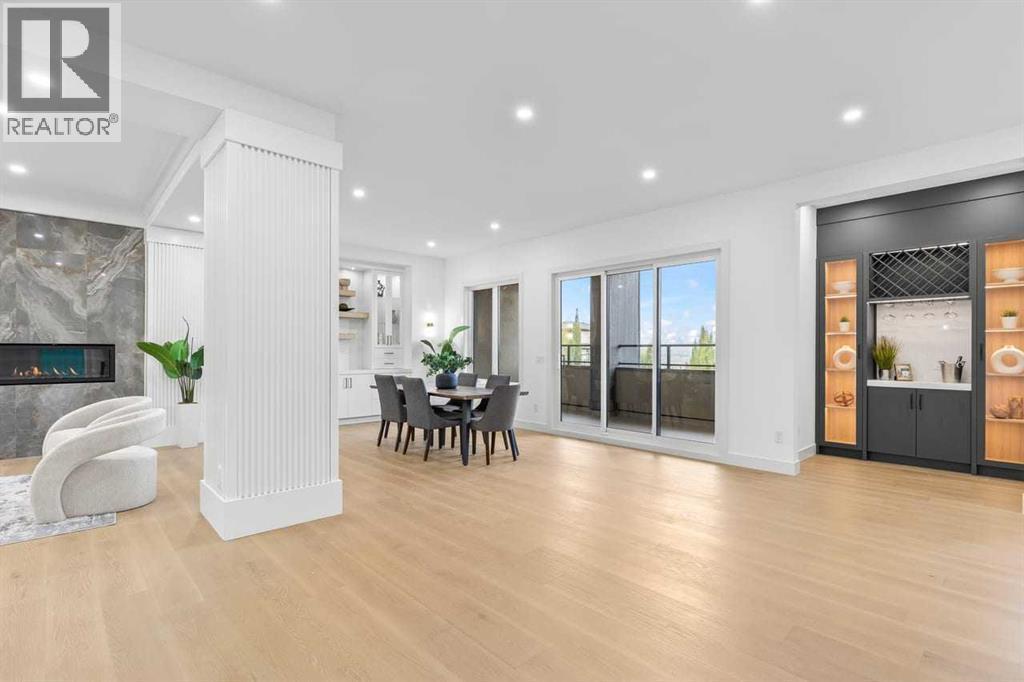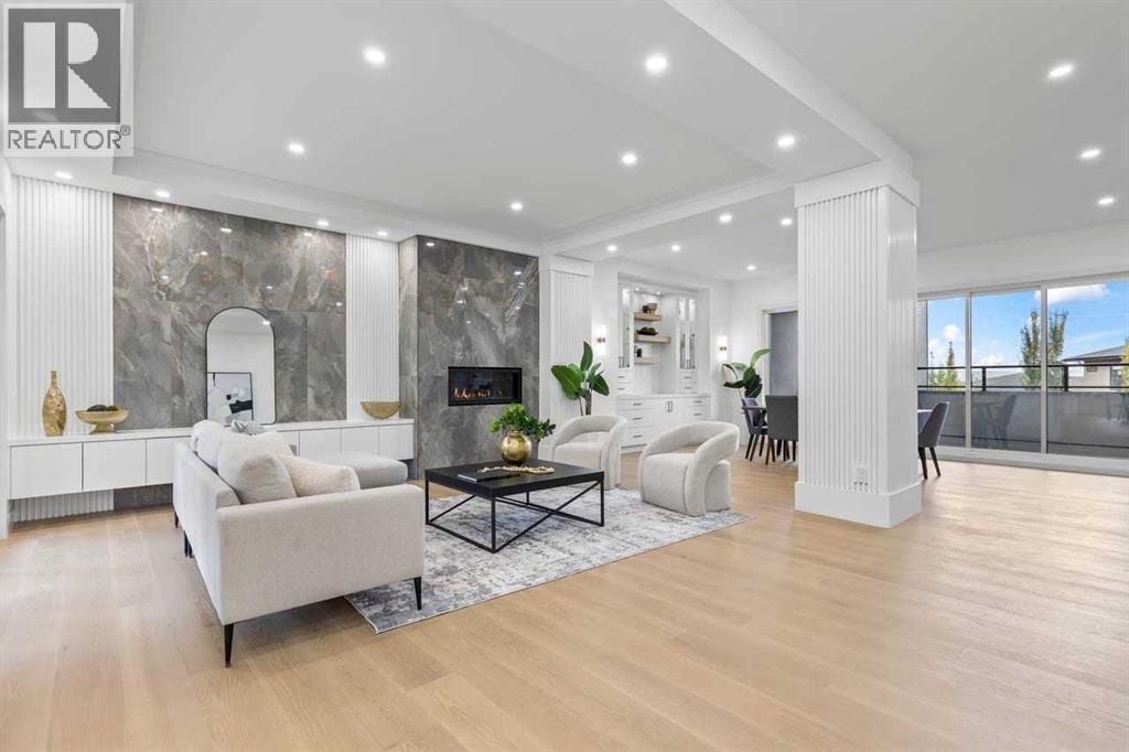Open house, Jan 31, 1-3 Set within the prestigious community of Patterson Heights – The Point - this exceptional luxury residence offers over 5,000 sq. ft. of elevated living designed for comfort and functionality. From the moment you arrive, the home makes a statement with a grand entryway highlighted by a floor-to-ceiling custom closet. Just off the entrance, a well-appointed mudroom features a walk-in closet and a striking full-height wall unit, providing direct access to the oversized double garage. The garage is fully outfitted with EV charging outlets, a gas heater rough-in, and hot and cold water taps. Completing this level is a full bathroom with quartz countertops and a floor-to-ceiling glass shower. The main living space is defined by 10-foot ceilings and wide vinyl plank flooring, creating a clean, modern flow throughout. The living room offers warmth and style with a custom wall unit and ambient LED lighting, while the dedicated bar area, complete with a bar fridge, is ideal for hosting. A private, light-filled gym with recessed lighting, floating shelving, and generous space for equipment. A striking open-riser staircase and a private elevator connect all 3 levels and lead to the stunning 2nd floor. Here, you’ll find a bright home office overlooking a large window, a sleek powder room, and a refined dining area anchored by a built-in LED-lit wall feature. Glass sliding doors open to a large East facing balcony, while the family room impresses with a coffered ceiling, art-block feature wall, and gas fireplace. Additional sliding doors lead to a fully landscaped backyard complemented by a composite rear deck with a gas line, backing onto peaceful green space, where nature and wildlife create a serene setting. The chef-inspired kitchen anchors the home with a quartz waterfall island, hidden cabinetry, two-tone modern cabinets, and high-end stainless steel appliances. A fully equipped spice kitchen allows for effortless entertaining, while a modern breakfas t nook with a statement light fixture completes the space. The upper level is a private sanctuary, beginning with a grand primary suite set behind French doors. Enjoy a private balcony overlooking green space, a juice bar, in-floor heated ensuite, and a spa-style bathroom featuring a freestanding tub and a glass-enclosed steam shower with rainfall head and granite seating. Two additional bedrooms share a Jack & Jill bathroom with quartz countertops, while a fourth bedroom offers its own full bath and walk-in closet. A thoughtfully finished laundry room enhances everyday convenience. A bonus room with downtown views and an additional wall unit completes the upper level, which continues the home’s open feel with 9-foot ceilings throughout. Additional highlights: basement under-slab heating rough-in, a 75-gallon hot water tank, two high-efficiency furnaces, two central A/C units, and extensive built-in cabinetry. Don't miss the opportunity to own this exceptional luxury home. Book your private showing today! (id:6769