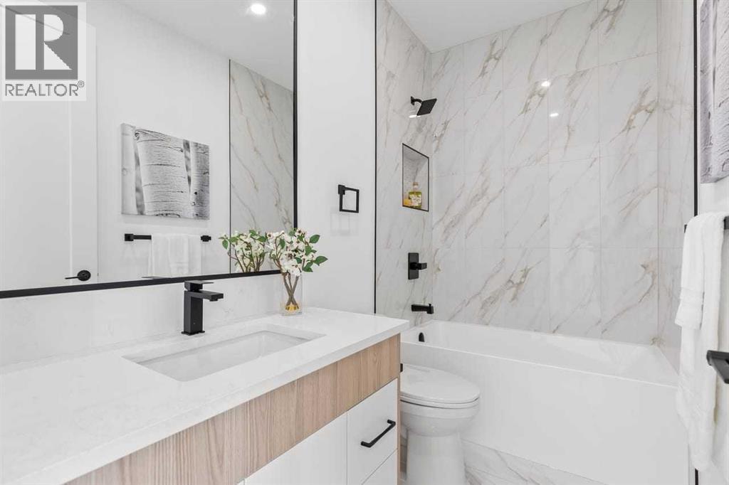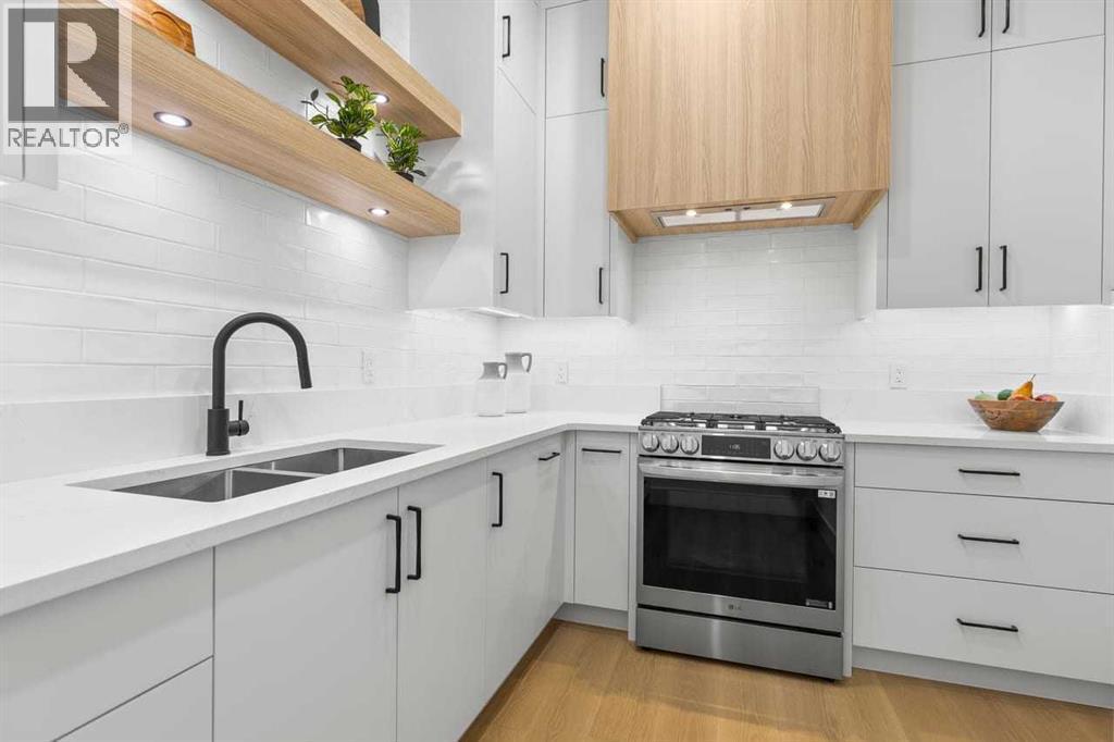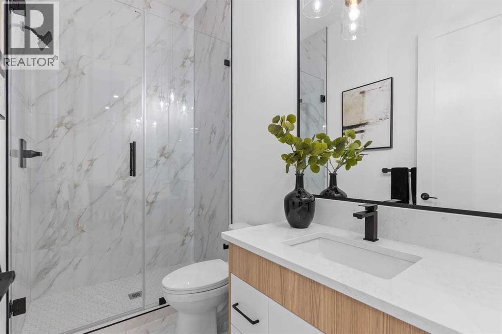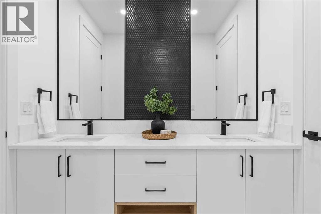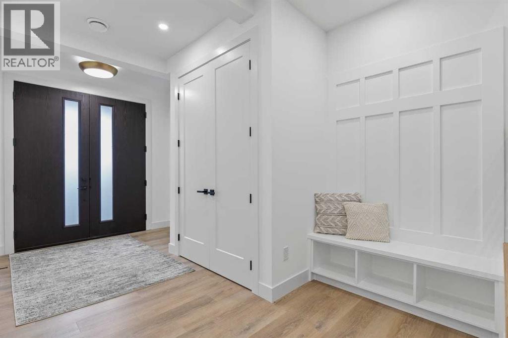 Open house, Jan 31, 1-3 Set within the prestigious community of Patterson Heights – The Point - this exceptional luxury residence offers over 5,000 sq. ft. of elevated living designed for comfort and functionality. From the moment you arrive, the home makes a statement with a grand entryway highlighted by a floor-to-ceiling custom closet. Just off the entrance, a well-appointed mudroom features a walk-in closet and a striking full-height wall unit, providing direct access to the oversized double garage. The garage is fully outfitted with EV charging outlets, a gas heater rough-in, and hot and cold water taps. Completing this level is a full bathroom with quartz countertops and a floor-to-ceiling glass shower. The main living space is defined by 10-foot ceilings and wide vinyl plank flooring, creating a clean, modern flow throughout. The living room offers warmth and style with a custom wall unit and ambient LED lighting, while the dedicated bar area, complete with a bar fridge, is ideal for hosting. A private, light-filled gym with recessed lighting, floating shelving, and generous space for equipment. A striking open-riser staircase and a private elevator connect all 3 levels and lead to the stunning 2nd floor. Here, you’ll find a bright home office overlooking a large window, a sleek powder room, and a refined dining area anchored by a built-in LED-lit wall feature. Glass sliding doors open to a large East facing balcony, while the family room impresses with a coffered ceiling, art-block feature wall, and gas fireplace. Additional sliding doors lead to a fully landscaped backyard complemented by a composite rear deck with a gas line, backing onto peaceful green space, where nature and wildlife create a serene setting. The chef-inspired kitchen anchors the home with a quartz waterfall island, hidden cabinetry, two-tone modern cabinets, and high-end stainless steel appliances. A fully equipped spice kitchen allows for effortless entertaining, while a modern breakfas t nook with a statement light fixture completes the space. The upper level is a private sanctuary, beginning with a grand primary suite set behind French doors. Enjoy a private balcony overlooking green space, a juice bar, in-floor heated ensuite, and a spa-style bathroom featuring a freestanding tub and a glass-enclosed steam shower with rainfall head and granite seating. Two additional bedrooms share a Jack & Jill bathroom with quartz countertops, while a fourth bedroom offers its own full bath and walk-in closet. A thoughtfully finished laundry room enhances everyday convenience. A bonus room with downtown views and an additional wall unit completes the upper level, which continues the home’s open feel with 9-foot ceilings throughout. Additional highlights: basement under-slab heating rough-in, a 75-gallon hot water tank, two high-efficiency furnaces, two central A/C units, and extensive built-in cabinetry. Don't miss the opportunity to own this exceptional luxury home. Book your private showing today! (id:6769