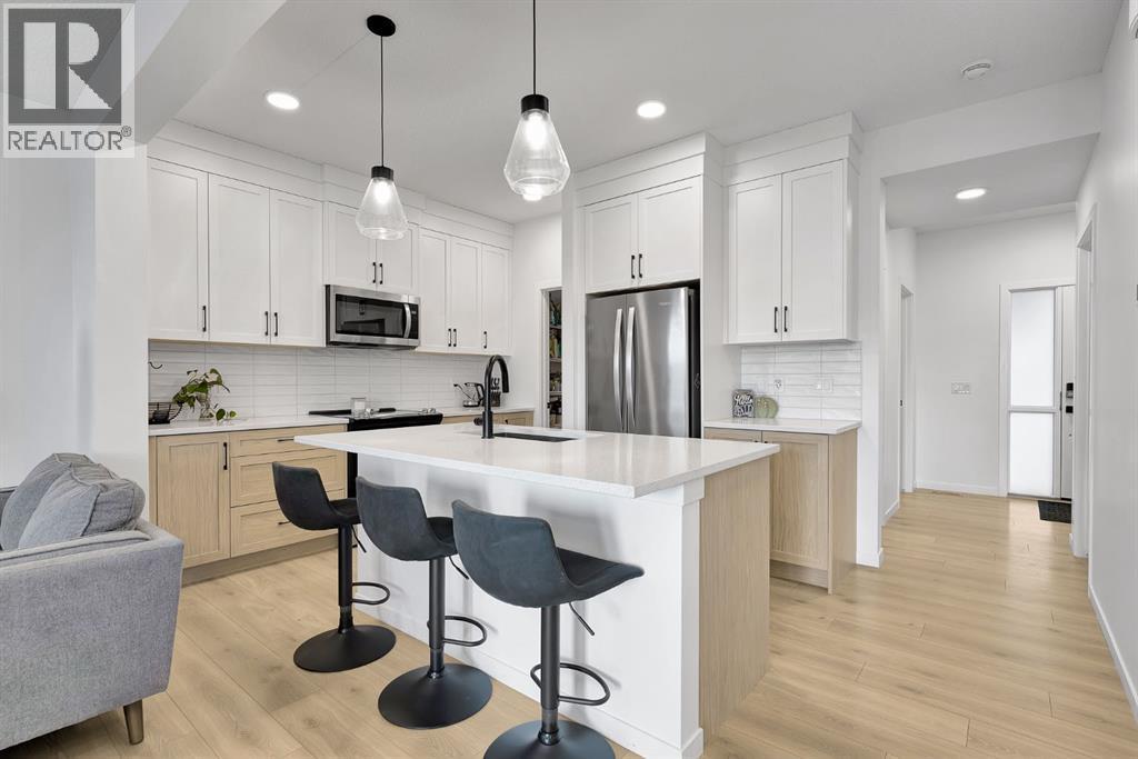 Welcome home to The Willows!This thoughtfully upgraded, fully developed 4-bedroom, 3.5-bath semi-detached home blends MODERN DESIGN with the kind of comfort that works for real life. From the moment you step inside, the bright, open main floor welcomes you with durable laminate flooring and a layout that flows effortlessly. The living room is centred around a cozy GAS FIREPLACE, setting the scene for quiet evenings, movie nights, and everything in between. The kitchen is a true heart-of-the-home moment — two-toned cabinetry, QUARTZ COUNTERTOPS, upgraded stainless steel appliances, and a stylish tile backsplash come together beautifully. A WALK-THROUGH PANTRY and functional mudroom keep daily chaos neatly tucked away, while a convenient powder room rounds out the main level. Upstairs, the primary suite is a calm retreat, complete with a generous walk-in closet and a stunning 5-PIECE ENSUITE featuring dual sinks and quartz counters. Two additional bedrooms, a sleek 4-piece bathroom (also with quartz), upper-level laundry, and a central bonus room offer flexibility for growing families, work-from-home days, or cozy family nights. The FULLY DEVELOPED BASEMENT adds even more living space, with high ceilings, a spacious family room, a fourth bedroom, and a beautifully finished 3-piece bathroom — ideal for guests, teens, or extended family. Outside, enjoy your private, landscaped backyard with a deck made for BBQs and warm summer evenings. The extended single attached garage provides room for both your vehicle and extra storage. With planned WALKING PATHS going in behind this home and located just steps from parks, pathways, shopping, and all the amenities The Willows is known for, this is a home that truly checks every box — and then quietly exceeds expectations. (id:6769
