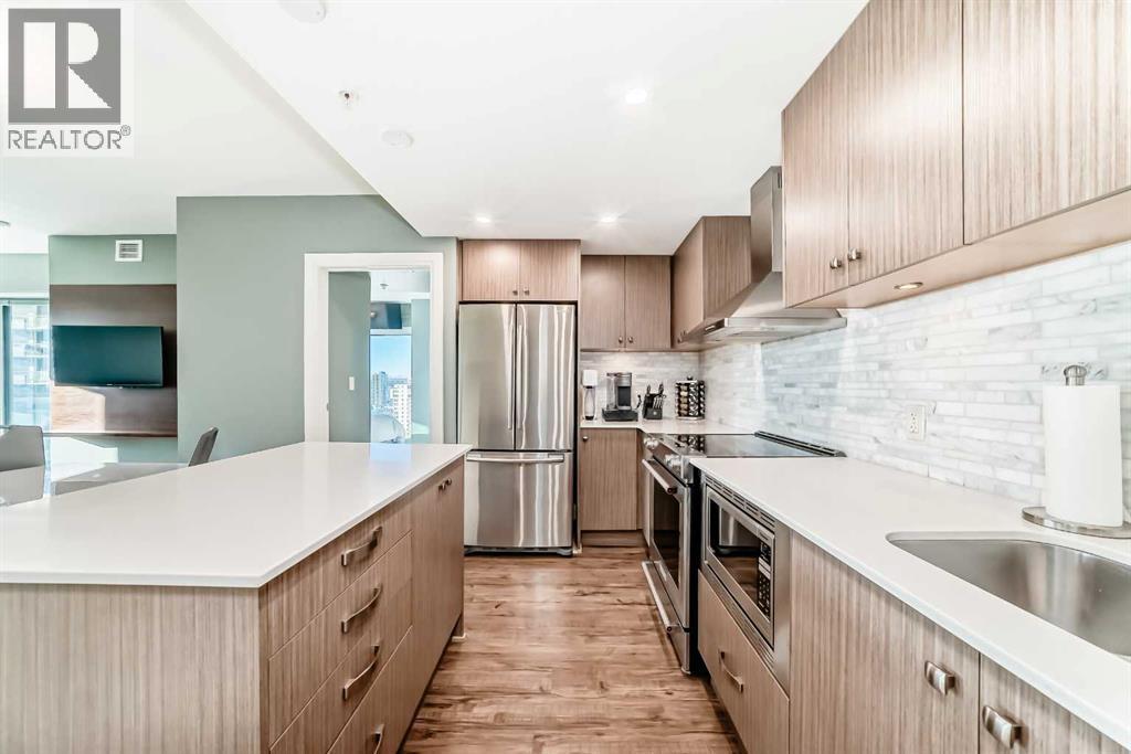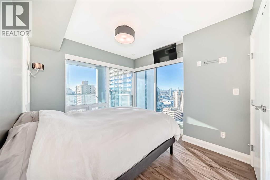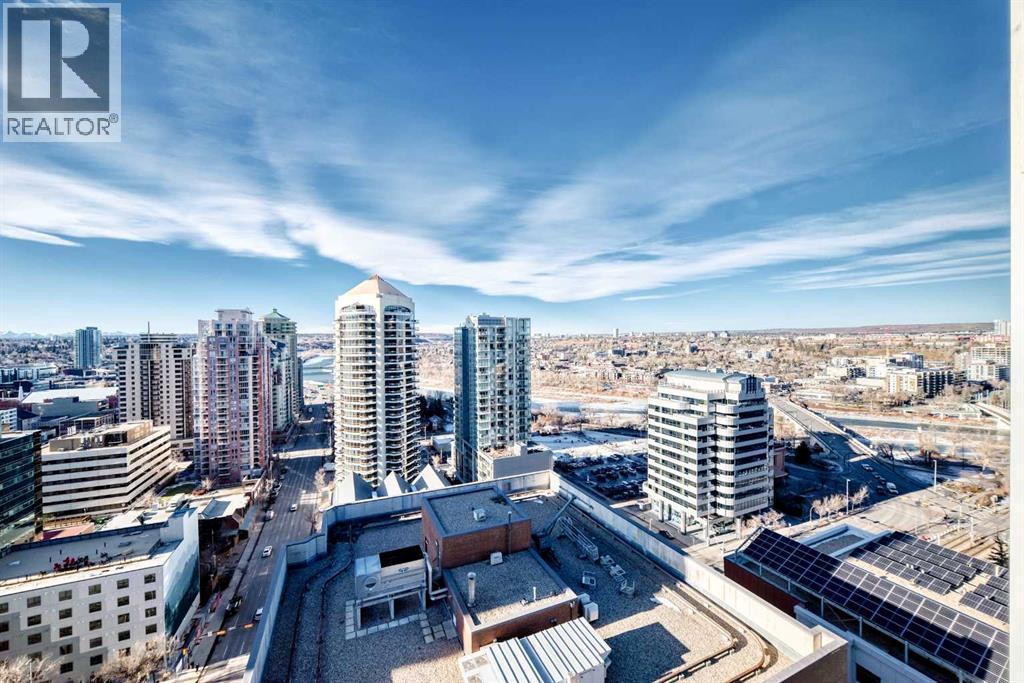 Experience the pinnacle of downtown luxury in this 2 bedroom, 2 bathroom, titled parking, SW-facing corner unit at VOGUE. Sold fully furnished and turnkey, this "Orion" floorplan is situated on one of the exclusive "Bedouin Suites" floors, featuring elite upgrades not found in the rest of the building.Floor-to-ceiling windows frame breathtaking mountain and river views, flooding the space with natural light. The interior boasts premium walnut built-ins, custom bedroom paneling, and a chef-inspired kitchen with an upgraded central island and quartz finishes. Both bedrooms act as private retreats, flanking the living area for maximum privacy. Perfect for investors, professionals and empty nesters. Beyond the unit, enjoy executive amenities including a 36th-floor Sky Gym and 24/7 concierge. Prime West End location steps to the river pathway, C-Train, downtown, and trendy Kensington. Condo fees are $610.35/month, including all utilities except electricity. (id:6769