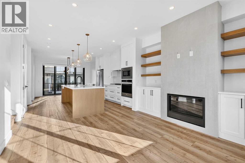 *** OPEN HOUSE Saturday, January 24, 2026 2pm – 4pm *** For those who crave both modern design and instant access to the outdoors, this Rarebuilt Homes corner-unit townhouse in Discovery Ridge delivers the best of both worlds. Set just steps from Griffith Woods, you’ll wake up to valley views, fresh air, and endless kilometres of walking and biking trails—perfect for morning runs, evening rides, or unplugging after a busy day. All this, while still being only 5–10 minutes from Westhills shopping, great restaurants, groceries, schools, and LRT access for an easy commute downtown. With over 1,700 sq. ft., 3 bedrooms, and 3 bathrooms, this home is designed for a dynamic, modern lifestyle. The oversized double attached garage comfortably fits a large SUV and a second vehicle, with room for bikes and gear. The entry-level flex space adapts effortlessly to your life—ideal as a home gym, gear room, creative studio, or secondary office. The main living level is bright, open, and made for entertaining. A chef-inspired kitchen features built-in appliances, designer tile backsplash, and a large island with breakfast bar—perfect for casual meals or hosting friends. The space flows into the living room, where a gas fireplace with custom built-ins creates a warm focal point, and the dining area is elevated with a custom buffet offering smart storage and style. A private, enclosed office provides a quiet work-from-home solution without sacrificing living space. Step outside through expansive sliding doors to the west-facing balcony, where you can unwind with sunset views, host summer BBQs, or enjoy a post-adventure drink as the day winds down. A powder room and thoughtfully designed storage complete this level. Upstairs, the primary suite feels like a retreat after a long day on the trails, featuring vaulted ceilings, oversized windows overlooking the ravine, a walk-in closet, and a spa-like 5-piece ensuite with dual vanities and a soaker tub. Two additional bedrooms, a full bath room, and upper-floor laundry add everyday ease and flexibility for guests or roommates. With over $30,000 in upgrades, this home stands out from the rest—custom fireplace cabinetry, dining buffet, enhanced kitchen storage, a dedicated office with sliding barn door and built-in desk, mirrored gym wall, and professionally installed window treatments throughout, including blackout blinds in all bedrooms for comfort and energy efficiency. Move-in ready and meticulously maintained, this is a rare opportunity to enjoy a lock-and-leave lifestyle surrounded by nature, without giving up style, convenience, or connectivity—right in one of Calgary’s most desirable westside communities. (id:6769