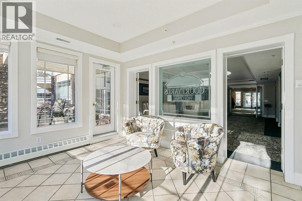 Enjoy peaceful, maintenance free adult living in the sought after community of Palliser at Courtyards West Park. This well managed condominium building offers a top floor, southwest facing home with a bright, open layout designed for comfort and ease, featuring two bedrooms, updated hardwood floors, and a spacious balcony with gas hookup overlooking the tranquil courtyard, perfect for morning coffee or relaxing evenings. A welcoming foyer leads to the formal dining area and a bright, thoughtfully designed kitchen with crisp white shaker style cabinetry, quartz countertops, raised breakfast bar for casual meals, pantry, and newer appliances. The generous living room easily accommodates both a comfortable seating area and a reading nook or home office, and features a cozy gas fireplace for year round enjoyment. Convenient in-suite laundry includes built-in storage, a folding counter, and ample space for a freezer, making daily routines effortless. Down the hall, you’ll find a full bathroom and two spacious bedrooms, including the primary. The primary retreat is a true sanctuary, offering a large sleeping area, walk-in closet, additional linen storage, and a private 4pc ensuite with a deep soaker tub and separate walk-in shower. This unit includes a titled underground parking stall and an assigned, secure caged storage unit, ideal for seasonal items. Residents of Courtyards West Park enjoy outstanding amenities, including a welcoming main floor gathering room with kitchen, library, and sunroom that opens to the beautifully landscaped courtyard, providing wonderful opportunities to socialize, host family, or meet neighbours. Ideally located near parks and walking paths, recreation facilities, Rockyview General Hospital, and the shops and cafés of Glenmore Landing, this well managed adult community offers a relaxed lifestyle with everyday conveniences close at hand. (id:6769