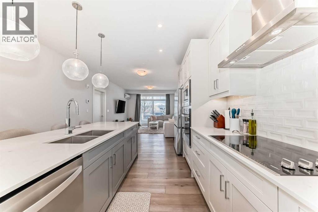 OPEN HOUSE on Saturday Jan. 24th from 12-3 PM! Welcome home to this IMMACULATE ground floor corner unit that features TWO bedrooms, TWO bathrooms, TWO parking stalls, A/C, and just under 1000 sq ft! Wide open floor plan on this beautiful unit and the proximity to ALL of the amenities is hard to beat...close to EVERYTHING! Hospital, the LAKE, VIP Theatre, numerous bars, restaurants, shops, YMCA, parks, playgrounds, transit, school and so much more! As you enter this home you have a small hallway that leads to the living space with the amazing kitchen being the focal point of this one and has quartz countertops, gorgeous white cabinets, built in wall oven and microwave, upgraded lights, large island and gorgeous tiled backsplash. As you move into the living room there is plenty of space for a sectional couch and other furniture and has the sliding doors to access the large balcony/patio! The primary bedroom is drenched in natural sunlight (3 windows!) and has a full spa inspired ensuite bathroom with floor to ceiling tile, quartz countertop and there is also a walk in closet! The 2nd bedroom is a good size as well and has access to the 2nd full bathroom (cheater ensuite) You will also LOVE the A/C, tandem parking stall, extra storage locker, in suite laundry room with a bit of extra storage, central courtyard, ground floor corner unit and the location is gonna be hard to beat! This home still looks BRAND NEW! Please come and have a look if you love beautiful condos in amazing communities! (id:6769