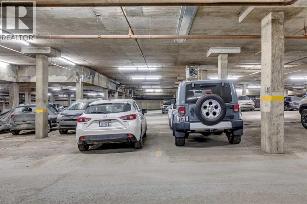 Top-floor, two-bedroom apartment with two secure, side-by-side underground parking stalls located in the community of Canyon Meadows. This pet-friendly complex is within walking distance to the CTrain and Fish Creek Park.The unit features a spacious living room with a tile-faced wood-burning fireplace, California knockdown ceilings, and new carpet professionally installed in 2023. Sliding glass doors provide access to the balcony. A separate dining area connects to the galley-style kitchen, which includes maple cabinetry and a black appliance package.The primary bedroom includes a walk-in closet, and the home is complete with a full-size ensuite washer and dryer. In addition to the two assigned underground parking stalls, an underground storage locker is included.Building amenities include an exercise room, recreational room, and a professionally landscaped central courtyard. (id:6769