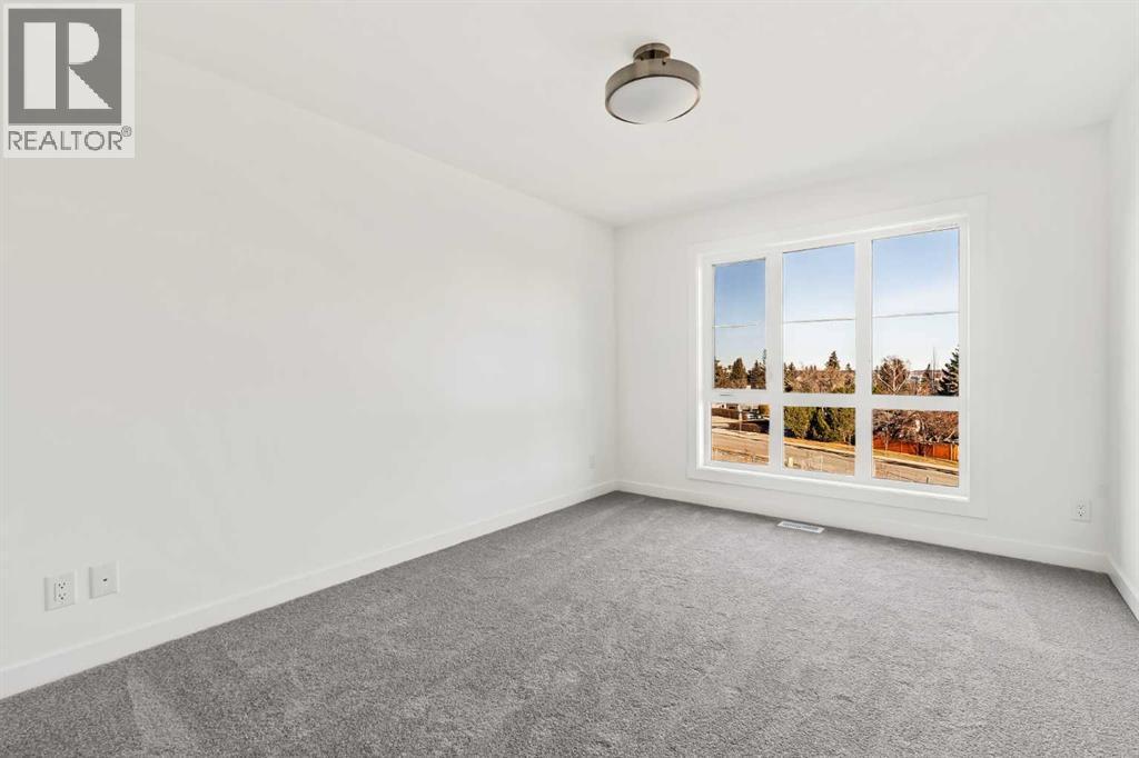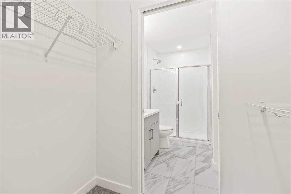 Welcome to one of the last remaining brand-new Manhattan models at Crown Park - Calgary's newest inner-city community. Featuring over 1,300 ft2 of living space, this home features 2 bedrooms, 2.5 bathrooms and a private single attached garage. This thoughtfully designed 3-storey city townhome offers an open-concept floor plan with all the luxuries you could desire in your next home. The contemporary design centers the living room between the kitchen and dining area, creating the perfect space for entertaining guests. The home boasts 9-foot ceilings on the main level, providing a bright and inviting atmosphere throughout the day. The gourmet kitchen is upgraded with full-height soft-close cabinetry to the ceiling, quartz countertops, and a suite of stainless-steel appliances, including an electric cooktop, chimney hood fan, and a built-in microwave & oven. The intelligent back-to-back design of this townhome maximizes space, creating an expansive main living area with a wall of windows and access to a private balcony that spans nearly 19' wide. The upper level features a primary bedroom with its own en suite, complete with a walk-in shower and walk-through wardrobe. A second generously sized bedroom, an additional full bathroom, and convenient upper-level laundry round out the upper level. The expansive balcony spans ~19'x7' and is the perfect outdoor living space complete with BBQ gas-line and A/C rough-in. Completing the home is a private oversized attached garage which is the perfect space to keep your vehicle and valuables safe all year long. Crown Park is one of the city's most coveted developments due to its prominent location near the Shaganappi golf course, walkability to transit, and easy access to downtown's countless amenities. This property is perfect for those who enjoy proximity to walking trails along the Bow River, dog-friendly parks, and local hot spots for dining and entertainment. The home comes complete with an extended 3-year workmanship warranty , complimentary legal fees, and full Alberta New Home Warranty - offering peace of mind and an easy transition into your new home. Ideal for young professionals, this brand new home is move-in ready at the most competitive prices ever seen at this stunning new development. (id:6769