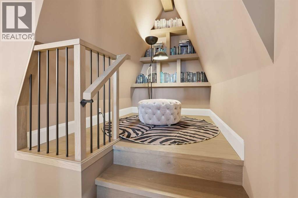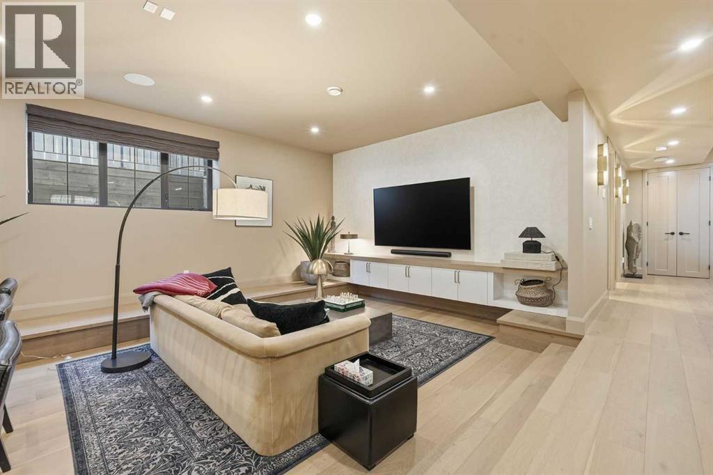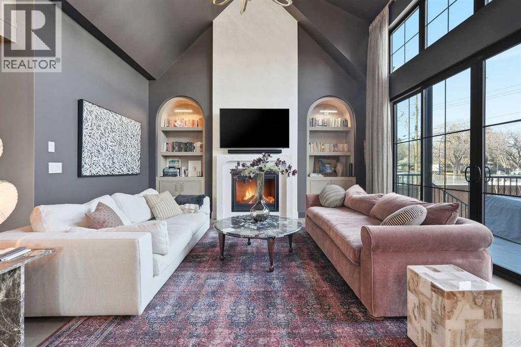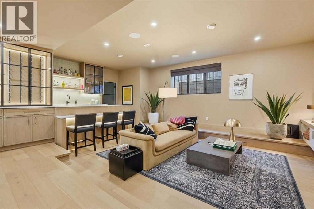 Enduring sophistication defines this beautifully crafted 2+2 bedroom residence in North Glenmore Park, offering more than 4,200 sq ft of refined living space with exceptional attention to detail throughout. The main level showcases wide-plank hardwood floors and soaring ceilings, setting the stage for an impressive living room highlighted by a dramatic vaulted ceiling with chandelier, a floor-to-ceiling window, and a stunning Venetian plaster fireplace. The thoughtfully designed kitchen is a chef’s delight, appointed with custom oak cabinetry, premium quartz countertops, a generous island with eating bar, high-end appliances, and a well-equipped butler’s pantry. Adjacent to the kitchen, the spacious dining area easily accommodates gatherings of family and friends. The main floor primary retreat provides a serene escape, complete with a walk-in closet and a luxurious 6 piece ensuite featuring in-floor heat, dual sinks, a freestanding soaker tub, and an oversized shower with heated bench and floor. A second bedroom with its own 4 piece ensuite offers ideal comfort for guests. A stylish 2 piece powder room, a practical mudroom with ample storage, and a dedicated laundry room with sink and cabinetry complete the main level. Upstairs, the loft area offers an inviting space to unwind, featuring a family room, games area, wet bar, 2 piece bath, and a charming library nook. The fully developed basement extends the home’s versatility with heated floors, a family/media room with bar and wine storage, and a separate games area—perfect for movie nights or entertaining. A glass door behind the bar leads to a room roughed in for a future sauna and shower. Two additional bedrooms, two 3 piece baths (including one ensuite & the other with a steam shower), and a second laundry room complete the lower level. Additional highlights include central air conditioning, custom draperies, two vacuum systems with attachments, and built in speakers. Outdoors, enjoy custom window well railings, an underground irrigation system, a sunny south-facing front patio, and a private back deck with natural gas BBQ hook-up and a beautiful wood-burning fireplace. Parking is effortless with a triple attached garage wired for 220 volt service. Ideally located within walking distance to Glenmore Athletic Park and close to two golf courses, top-rated schools, shopping, public transit, and major routes including Crowchild and Glenmore Trails, this exceptional home offers an unparalleled blend of luxury, comfort, and convenience. (id:6769