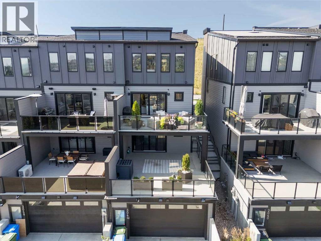 Perched high in Springbank Hill, this modern three-storey townhome offers over 2,500 sq ft of thoughtfully designed living space where style, comfort, and functionality come together effortlessly.The setting is exceptional. Positioned at the top of the hill with an east–west orientation, the home captures incredible natural light throughout the day while offering beautiful views — sunsets over the Rocky Mountains to the west and peaceful greenspace beyond. Oversized windows on every level bring the outside in and create a bright, welcoming atmosphere from morning through evening.The main floor makes a strong first impression with 9-foot ceilings, luxury vinyl plank flooring, and contemporary lighting. The open-concept kitchen is both stylish and practical, featuring sleek quartz countertops, stainless steel appliances including a gas range, and a layout designed for everyday living and entertaining. Just off the dining area, a spacious deck with elegant glass railings extends the living space outdoors — perfect for morning coffee, evening barbecues, or simply enjoying the view.Upstairs, the primary suite offers a quiet retreat with a private 4-piece ensuite and a large walk-in closet. Two additional bedrooms share a full bathroom, and the upper-level laundry adds everyday convenience, making this floor ideal for family living.The fully finished walkout level is designed with flexibility in mind. A generous recreation and media room opens onto a covered lower deck of more than 400 sq ft, framed with glass railings to maximize the surrounding natural views. A versatile den and a third full bathroom complete this level, providing comfortable space for guests, a home office, or additional living areas.Additional highlights include an oversized heated garage and a private elevator servicing all three levels, offering both everyday convenience and long-term accessibility for those looking to comfortably age in place.Located just minutes from excellent schools, shopping, restaurants, and everyday amenities, with quick access to Stoney Trail for an easy commute downtown or a weekend escape to the mountains, this home delivers a rare combination of lifestyle, location, and low-maintenance living.Sophisticated, functional, and perfectly positioned — this is Springbank Hill living at its best. (id:6769