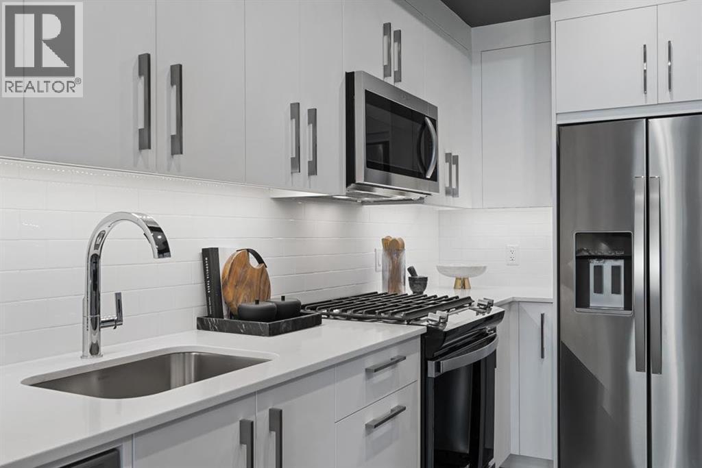 Discover modern city living at Frontier, a boutique development by Truman ideally situated in the heart of Kensington—one of Calgary’s most walkable and culturally rich neighbourhoods.This 2-bedroom, 1-bathroom condo is a smartly designed space that balances style and functionality, making it an excellent choice for urban professionals, couples, or savvy investors. The open-concept layout is filled with natural light, offering a contemporary flow that maximizes efficiency in every square foot. The streamlined kitchen features quartz countertops, full-height cabinetry, and premium stainless steel appliances—all connected seamlessly to the bright, airy living area, perfect for hosting friends or unwinding after work. Both bedrooms are designed with comfort and flexibility in mind—ideal for restful nights, a productive work-from-home setup, or accommodating guests. The sleek 4-piece bathroom is finished with clean, modern details, combining function with a spa-inspired feel. Additional features include one titled underground parking stall and access to exclusive resident amenities such as a fully equipped fitness centre, co-working lounge, secure bike storage, and a beautifully landscaped private terrace. Just steps from boutique shops, cafés, acclaimed dining, scenic river pathways, LRT stations, and Calgary’s downtown core, Frontier offers exceptional value and location for those looking to live or invest in one of the city’s most vibrant communities. *Photo Gallery of Similar Unit* (id:6769