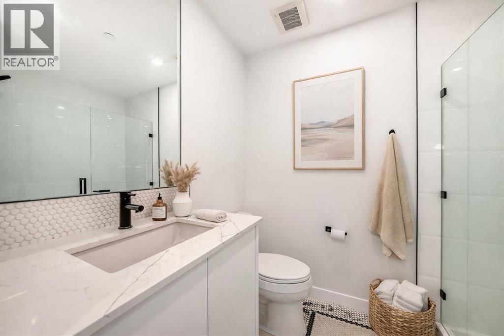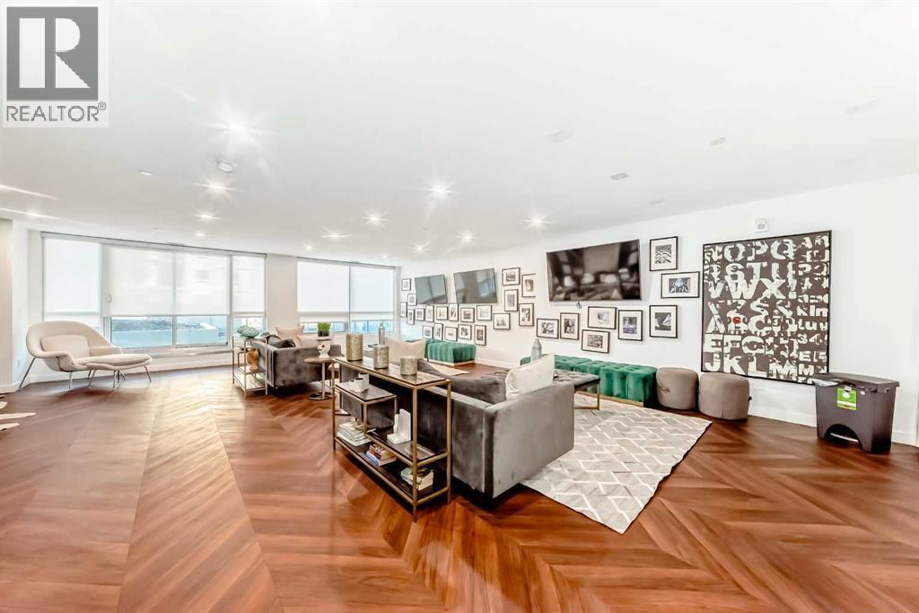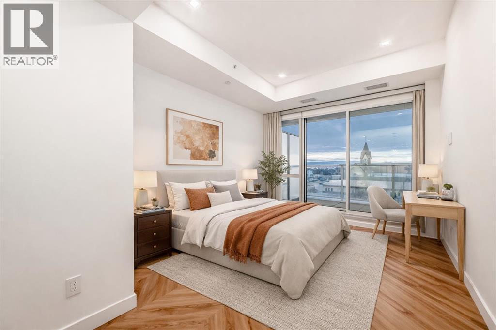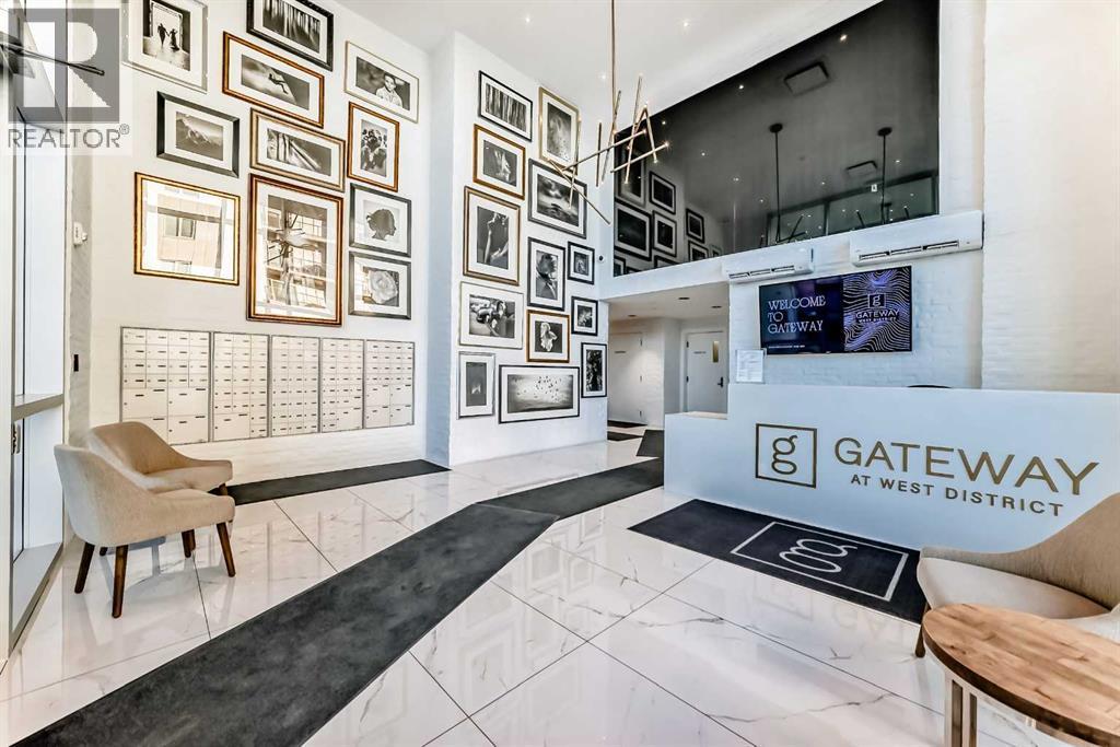 Welcome to Gateway by TRUMAN, ideally located in the vibrant, master-planned West District. This concrete-constructed residence offers modern luxury, thoughtful design, and exceptional urban convenience. This two-bedroom, two-bathroom home with titled underground parking features chevron wide-plank flooring, designer lighting, and flat-painted ceilings for a timeless, upscale feel. Floor-to-ceiling windows flood the space with natural light and capture mountain views, while central air conditioning ensures year-round comfort. The chef-inspired kitchen blends style and function with matte custom cabinetry, brushed-gold accents, quartz countertops and backsplash, under-cabinet lighting, and a generous eating bar. Premium appliances include a gas cooktop, wall oven, 36” Fisher & Paykel integrated refrigerator, paneled dishwasher, and statement hood fan. The open living and dining areas extend to a private terrace, ideal for outdoor lounging and entertaining. The primary suite features a walk-in closet and spa-inspired ensuite with quartz counters, mosaic tile, and a glass-enclosed shower. The second bedroom offers flexibility as a guest room or home office with access to a stylish four-piece bath. Additional highlights include in-suite laundry, ample storage, and secure underground parking. Residents enjoy premium amenities such as a rooftop patio, owner’s lounge, concierge, bike storage, EV charging, and visitor parking.Surrounded by parks, walking paths, boutique shopping, cafés, and dining, this home offers elevated living in one of Calgary’s most sought-after communities. (id:6769