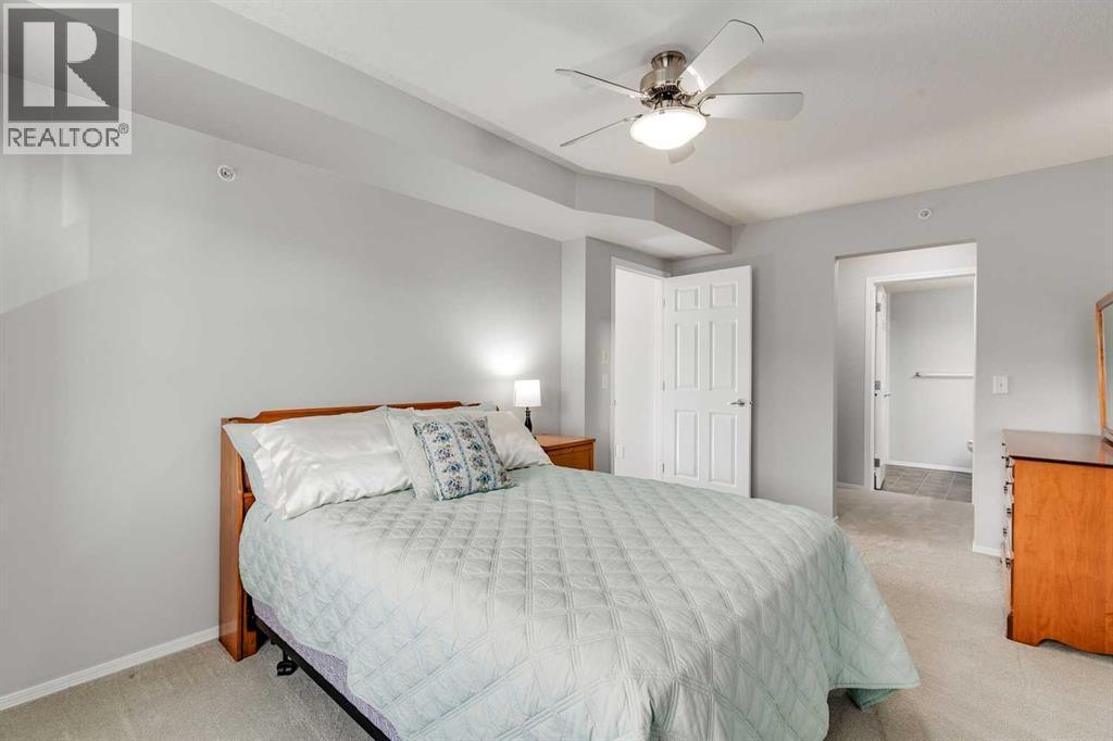 Amazing opportunity in the highly sought-after, 55+ Calvanna Village! Immaculately maintained, this top floor, corner unit is sure to impress the minute you walk in. With almost 900 square feet, this well-designed floorplan offers 2 bedroom and 2 bathrooms. The well equipped kitchen w/maple cabinets provide plenty of storage and counter space, plus the island has room for a couple of stools. Appliances look new and are well maintained. Flooded with natural light, the space feels bright and airy. Open concept design allows for nice flow between your kitchen, dining area and living room w/beautiful SE exposure through all the windows. Patio door leads out to your private balcony complete w/a gas line. Enjoy the outdoor space on those warm days.Spacious primary bedroom can easily accommodate your king bed and all your furniture plus the closet area is complete w/California closet built-ins…a great bonus providing more functionality. 3-pc ensuite with a walk-in shower is what you need for easy access. 2nd bedroom is well sized and a 4-pc bathroom completes the space. Insuite laundry plus a large storage room in the unit is an added perk. Did I forget to mention you have an underground parking stall? Your winter days will be easy, plus an extra storage locker in front.The community that has been created in Calvanna is what residents love. This is the perfect lifestyle for those seeking the convenience of condo living and connection to your neighbours. A private clubhouse offers a social room and a kitchen for larger gatherings. The rec area has table tennis, a pool table and gym equipment. There is no shortage of activities for those looking to participate with cards, bingo and coffee dates to chat with your neighbors. Easy access to shopping and restaurants plus plenty of walking paths along the river. Don’t wait on this one. Premium, top floor units like this don’t come up for sale very often. (id:6769