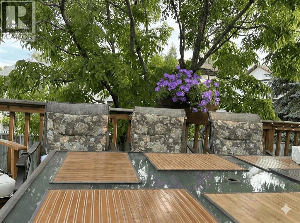 A large portion of this home was renovated in 2023, and it’s a genuinely functional family home in a location that’s hard to beat. You’re minutes to Fish Creek Park, Safeway, Costco, and there’s a daycare just down the street. Add rare RV parking, an EV charger, and an oversized garage, and you’ve got everyday practicality covered. The real highlight is the backyard. With two oversized outdoor spaces, a large upper deck and a separate patio, you get multiple zones for entertaining, kids playing, or quiet evenings outside. There’s also tons of green space, mature trees, and a fully fenced, south facing yard that stays bright and usable all day. Inside, vaulted living room ceilings and big windows bring in great natural light, with a stone surround fireplace anchoring the space. The kitchen features quartz countertops, stainless steel appliances, ample cabinetry, and an eating nook that opens to the deck for easy indoor outdoor flow. Upstairs you’ll find three bedrooms, all a great size for kids and guests. The basement is developed and adds even more flexibility with a fourth bedroom and a large entertainment room, complete with a 110 inch screen and 4K projector (available by separate agreement). The basement also has a roughed in bathroom, offering an opportunity to add a finished bath. (id:6769