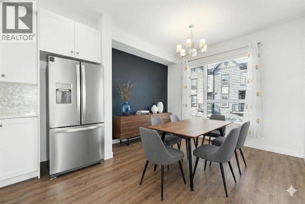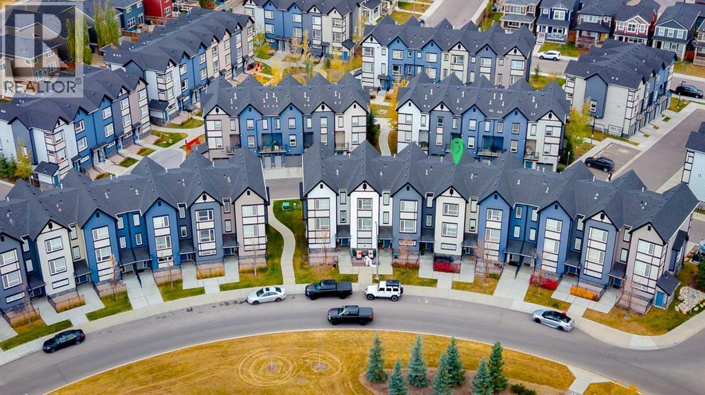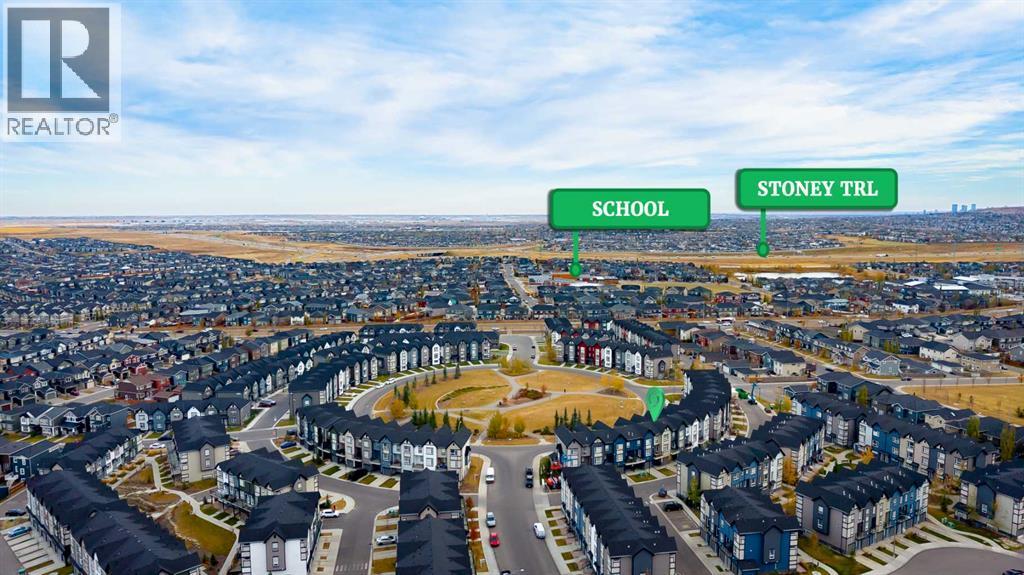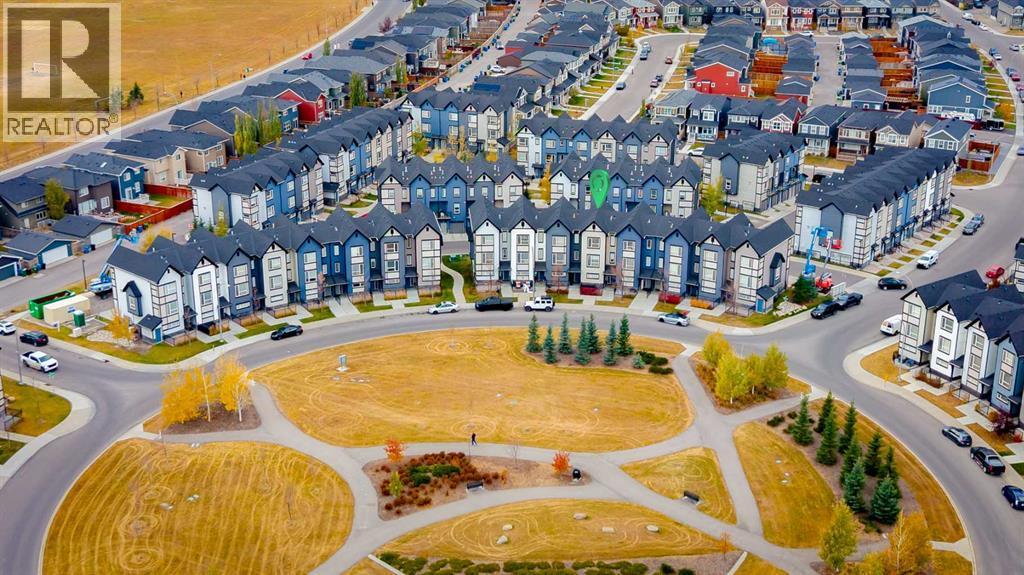 **OPEN HOUSE SAT JAN 24 FROM 1-3PM & SUN 25 1-4PM**Welcome to this beautifully designed 3 bedroom, 2.5 bathroom townhouse, ideally located in the sought-after community of Evanston in NW Calgary. Perfectly positioned facing a picturesque circular park, this home offers a blend of thoughtful layout, modern finishes, and everyday convenience. The entry level welcomes you with a spacious foyer featuring direct access to the finished double tandem garage, finished with durable epoxy flooring and including dedicated utility and storage areas, providing both function and organization. From here, step outside to enjoy a private ground-level patio, ideal for relaxing, gardening, or entertaining. Additional parking available on the single driveway, ample visitor parking as well as convenient street parking in front of the home. Upstairs, the main living level showcases an open-concept design that seamlessly connects the living room, dining area, and kitchen. The centrally located kitchen is the heart of the home, anchored by a large quartz island and complemented by abundant cabinetry, multiple pantry spaces, and stainless steel appliances. On one side of the kitchen, the bright and inviting living room features large windows that flood the space with natural light and provide access to a balcony, perfect for morning coffee or evening downtime. On the opposite side, the dining area offers plenty of room for hosting family dinners or gatherings with friends. A convenient 2-piece powder room completes this level. The upper floor is thoughtfully arranged to maximize privacy and comfort. The primary suite is situated at one end and features a walk-in closet and a private 3-piece ensuite. On the other end, two additional well-sized bedrooms - one with a walk-in closet—share a full 4-piece bathroom. A convenient upstairs laundry area adds to the practicality of the layout, making daily routines effortless. Additional features include air conditioning for year-round comfort and a l ocation that truly sets this home apart. Enjoy walking-distance access to Evanston’s shopping, schools, and nearby soccer fields, along with quick and easy connections to Stoney Trail for commuting around the city. This move-in-ready townhouse offers a rare combination of park-facing views, modern finishes, and an unbeatable location - an excellent opportunity to call Evanston home. (id:6769
