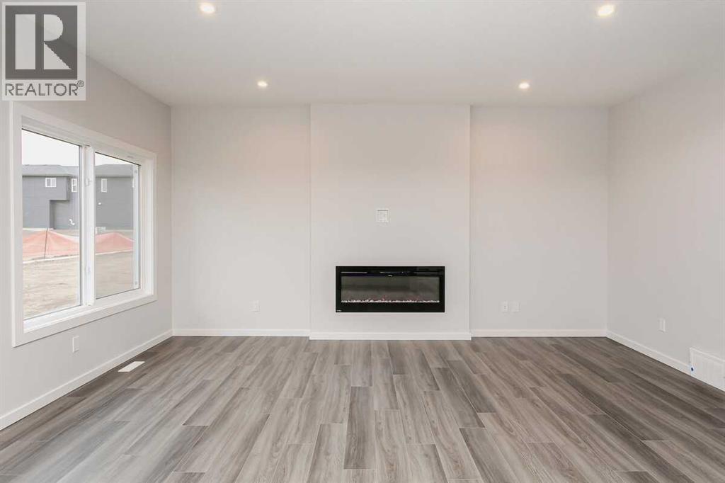 Welcome to this Bedrock Homes quick possession, ideally located on a premium corner lot in the vibrant Heartwood community of SE Calgary. Offering over 2,500 sq ft of thoughtfully designed living space, this home features a central flex room perfect for a home office or guest area, and a striking open-to-below staircase that fills the home with natural light. The chef’s kitchen is equipped with built-in microwave, chimney hood fan, and a large island that opens to the dining area and great room—ideal for entertaining. A 50” electric fireplace adds warmth and style, while metal spindle railings and custom melamine shelving elevate the finish throughout. Upstairs, enjoy a spacious bonus room and retreat to the luxurious primary bedroom featuring a freestanding tub, tiled shower, dual sinks, and private water closet. Complete with a walk-through mudroom and pantry and double attached garage, this home offers exceptional comfort, design, and location close to amenities and parks. Photos are representative. (id:6769