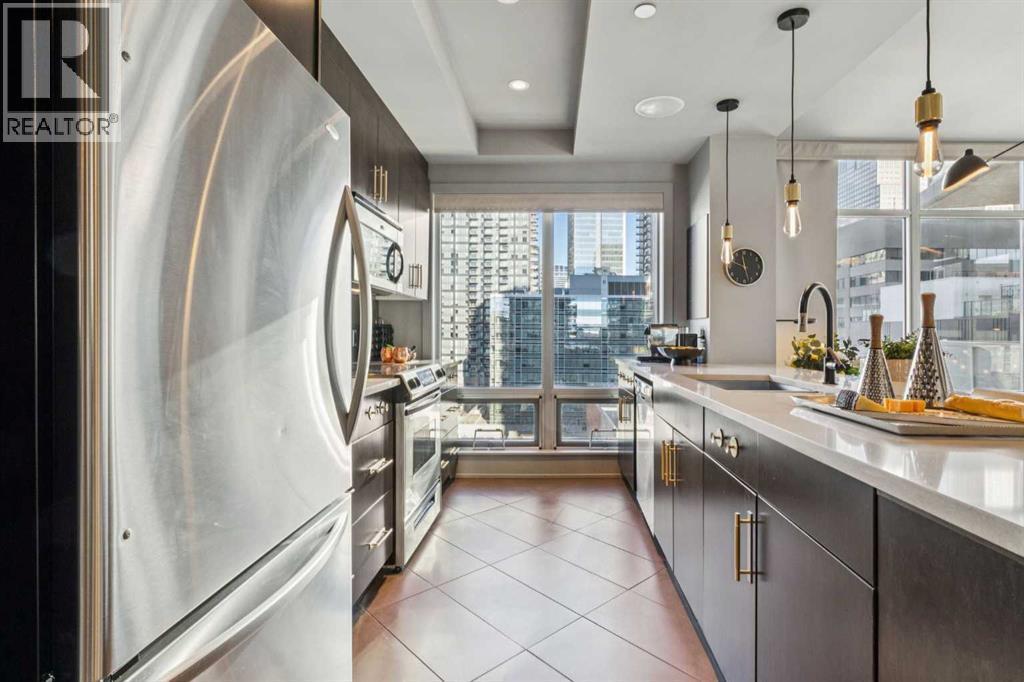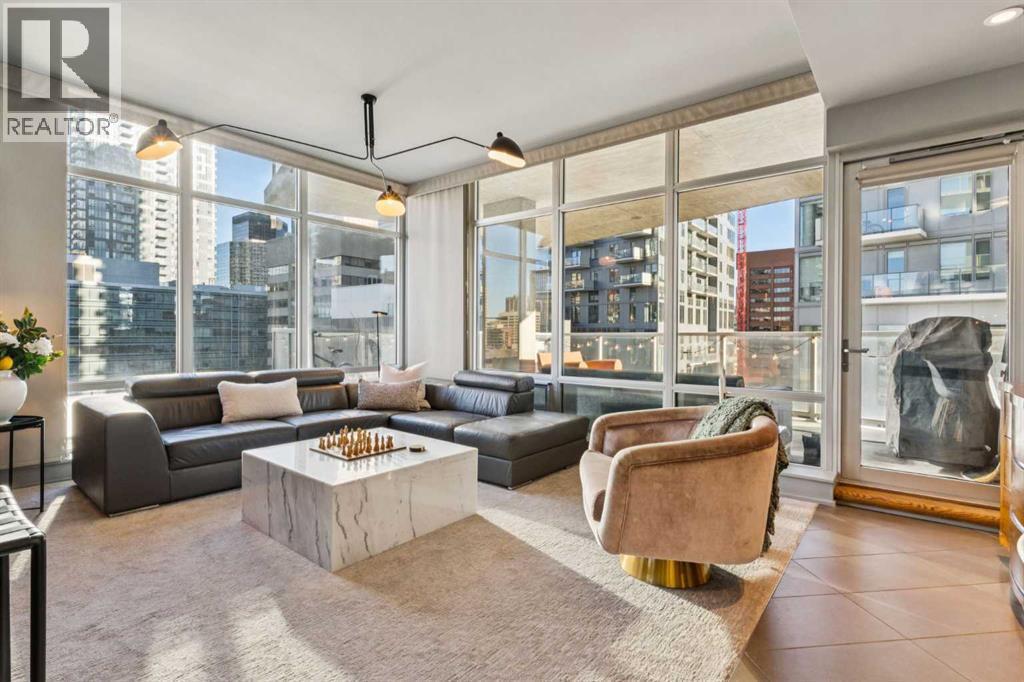 ****Open House Saturday, January 31 from 12-2 pm.This one-of-a-kind, designer-influenced home in Castello is ready for you to move in and start living your best downtown life. Freshly painted with new carpet, the space immediately sets itself apart the moment you enter. A welcoming entry area offers ample seating to unwind after your day, while built-in speakers throughout the dining & living rooms, and primary suite create the perfect soundtrack for your life.Floor-to-ceiling windows flood the home with natural light, highlighting the modern, linear feel of the layout. Step out onto the massive 300-square-foot terrace—ideal for outdoor dining, lounging, or entertaining. A natural gas sub provides endless fuel for the BBQ or fire table, making evenings on the terrace effortlessly memorable.The kitchen is a chef’s dream with quartz countertops, stainless steel backsplash, espresso cabinetry with striking bronze hardware, floor-to-ceiling windows, a large pantry, peninsula island with built-in beverage fridge, and an eating bar—perfect for entertaining or quick weekday meals. Custom HUPPE wall systems maximize storage without compromising style.The primary suite offers a lavish ensuite with dual sinks, glass-enclosed shower, and walk-in closet with custom built-ins. The second bedroom is ideal for guests or a home office. Designer lighting, new plumbing fixtures, in-suite laundry, and built-in speakers complete the thoughtful touches throughout.Castello’s exclusive amenities elevate city living: concierge service, fitness center, guest suite, heated/secure parking, and a car wash bay. With only five units per floor in this concrete-built building, privacy and quiet are guaranteed.Perfectly positioned in the heart of downtown Calgary, you’re steps from restaurants, cafés, pubs, bike lanes, grocery stores, parks, and wellness centers. Access nearby healthcare, including Sheldon Chumir, and even a pet-friendly hospital within the block.Luxury, convenience, an d thoughtful design come together in this exceptional downtown residence—perfect for the professional who wants it all. (id:6769