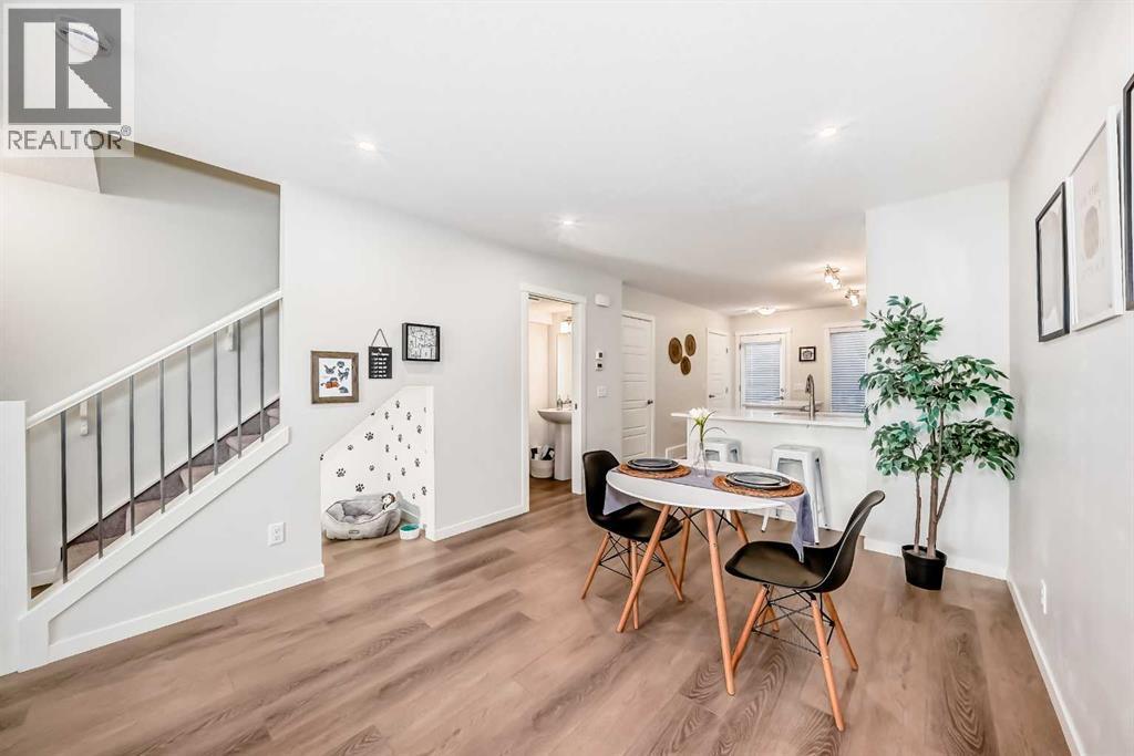 Meet your elevated escape! This like-new, pet-friendly townhome offers chic, low-maintenance living with low condo fees and almost 1400 sq ft of thoughtfully designed space. The home features 2 spacious primary bedrooms, each with its own ensuite, plus a convenient main-floor powder room and a versatile bonus room - perfect for an additional bedroom, home office, kid's play area, etc. The bright, modern interior of this beautiful home showcases white cabinetry and white quartz countertops throughout plus stainless steel appliances, an upgraded kitchen backsplash, and a kitchen island that adds extra storage and workspace. A breakfast bar makes casual meals easy, while a dedicated dining room is perfect for entertaining. Upgraded window coverings and a smart mix of laminate and carpet flooring will make a stylish statement that you can be proud of. The upper-floor laundry adds everyday convenience while central air conditioning keeps things comfortable year-round. Relax and finish the day on your large, private rooftop patio with mountain view - ideal for enjoying summer evenings with family and watching sunsets with that special someone. Immediate possession, Move-in ready, Immaculate condition, located in amenity rich Seton and packed with an array of lifestyle perks, this home truly lives large! (id:6769