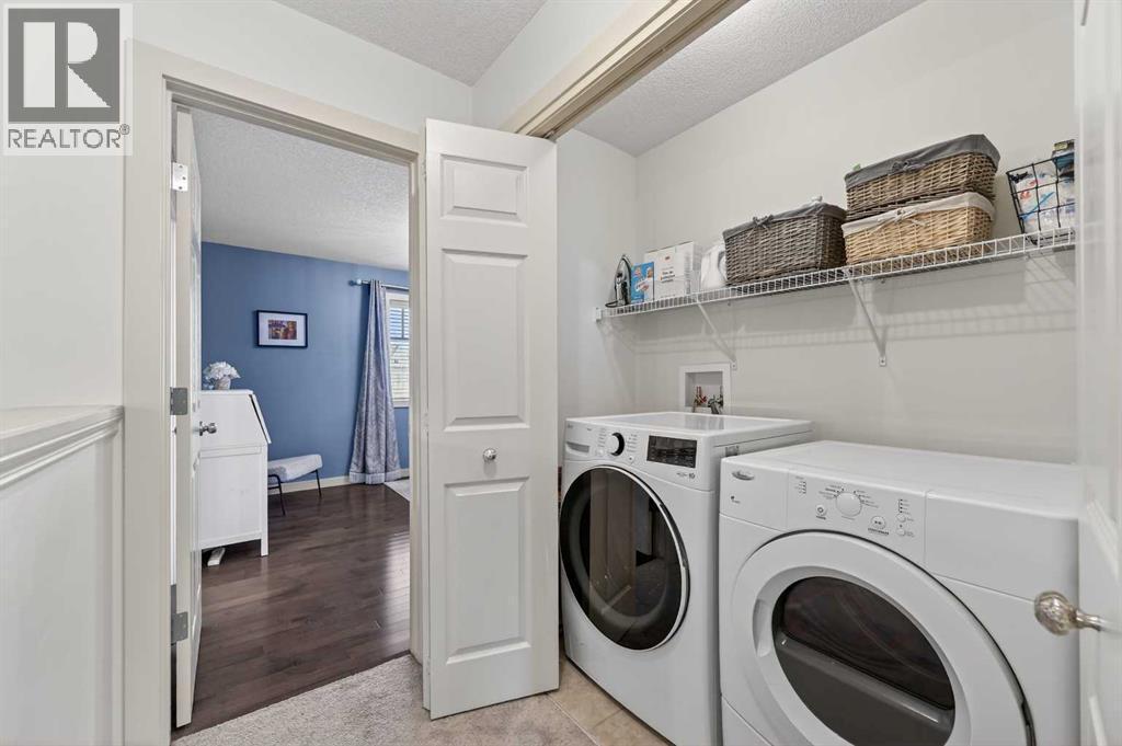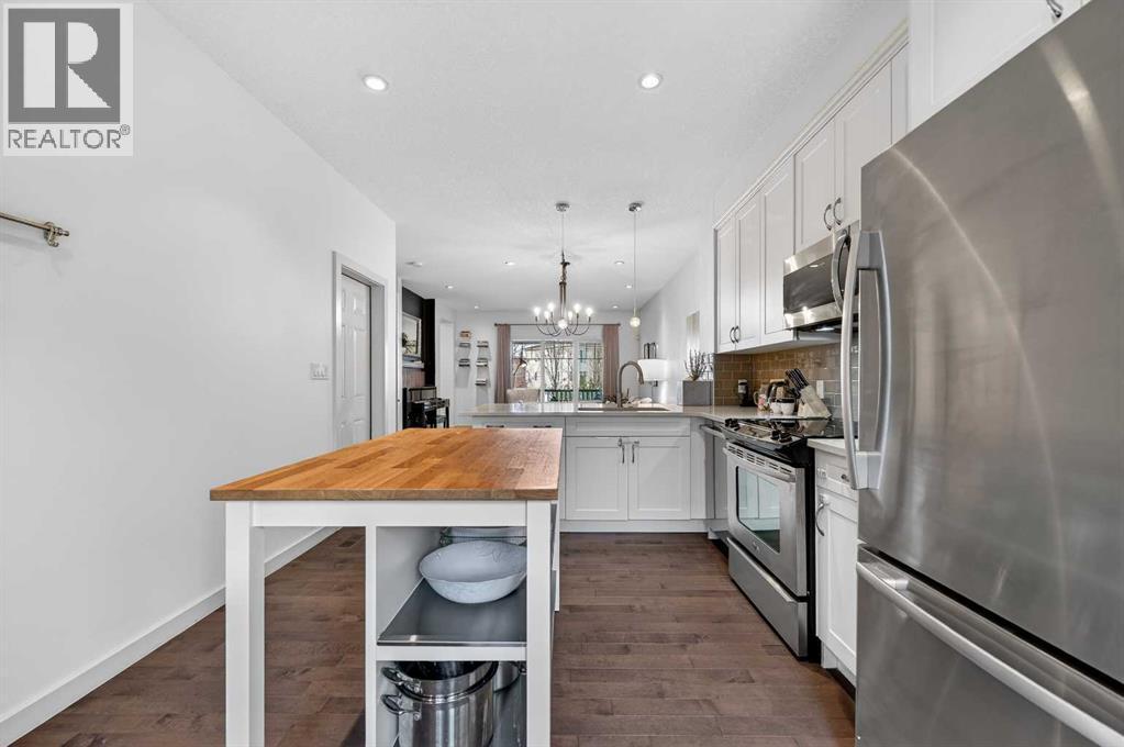 Welcome to this beautifully maintained and thoughtfully updated townhome in the award-winning Currie Barracks community. Offering nearly 2,200 sq ft of developed living space across three levels, this Homes by AVI built “Mahoney” model features 3 bedrooms up, 4 bathrooms, and an ideal layout for both everyday living and entertaining.The sunny west-facing front porch sets the tone and is perfect for evening relaxation. Inside, the open-concept main floor is filled with natural light and showcases hardwood flooring, high ceilings, and a spacious living area that flows seamlessly into the kitchen and dining space. The kitchen features quartz countertops, stainless steel appliances, ample cabinetry, and direct access to the private rear patio and fenced yard, ideal for BBQs and low-maintenance outdoor living.Upstairs, the primary suite offers a full walk-in closet and a 5-piece ensuite, while two additional well-sized bedrooms and a full bathroom complete the upper level. The fully developed basement (with permits) adds excellent flexibility, featuring a family room, home office or den, 2-piece bathroom, and extra storage.An insulated single attached garage, generous front entry, and well-managed bare-land condo complex add everyday convenience. Newly installed 4 kW solar system provides meaningful energy savings and adds long-term value.Located steps from parks and playgrounds, close to schools including Montessori programs, and with quick access to Crowchild Trail, Sarcee Trail, Marda Loop, and Westhills Shopping Centre, this is inner-city living with a true neighbourhood feel. Currie’s continued development with future shops, cafes, and amenities makes this an excellent lifestyle and investment opportunity. (id:6769
