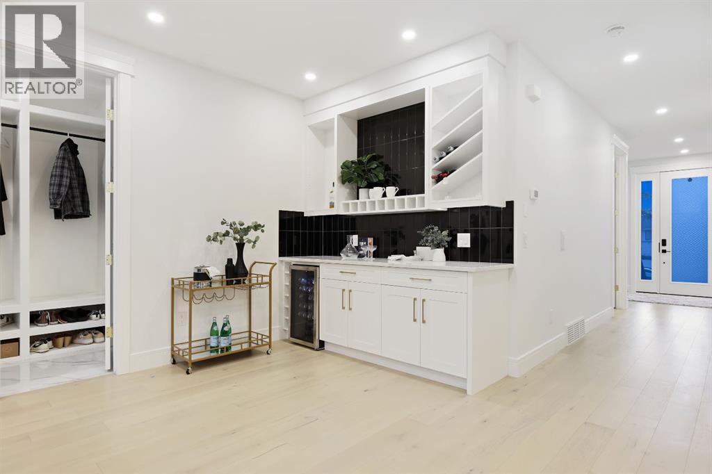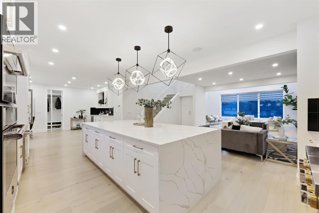 This Modern Art Piece, an exceptional custom-built luxury home located in the heart of Brentwood. Meticulously constructed by the builder as a Modern Master Piece, this home reflects uncompromising craftsmanship, premium materials, and thoughtful design throughout. Offering 7 bedrooms, 5.5 bathrooms, and over 3,600 sq. ft. of well designed living space, plus a fully developed legal basement suite with a private, separate walk-up entrance, This property delivers outstanding versatility and value. The striking contemporary exterior, showcases contemporary brick and Hardie Board finishes, enhanced by professional landscaping and elegant exterior accent lighting. Step inside to be greeted by a dramatic 19-foot ceiling in the main living room with an open-to-below second-storey design, creating a bright and expansive atmosphere. The grand living space is anchored by a custom gas fireplace with stone façade, seamlessly flowing into the gourmet kitchen, with an expensive 10-foot quartz waterfall island which serves as the centre piece perfect for entertaining, complemented by top-of-the-line Jen Air appliances and refined finishes. Adjacent to the kitchen is a stylish dining nook with custom wall paneling, while a thoughtfully designed bar offers an ideal space for evening hangouts or serving guests. A private back entry leads to a functional mudroom. The main floor also features a bedroom with its own 3-piece ensuite, ideal to entertain guests, or for extended family needs, along with another 2-piece designer powder room. Upstairs, enjoy an open bonus room overlooking the living area, framed with modern glass railings, The upper level boasts two luxurious primary bedrooms, each with spa-inspired en-suites featuring floor-to-ceiling ceramic tile, in-floor heating, and premium lavatories throughout. one with steam shower, and a free standing soaker tub, The fully developed basement with 9ft ceiling, includes a legal suite with two bedrooms, a full bathroom, a kitc hen with shaker-style cabinetry, complete appliance package, and its own full-sized washer and dryer, The other portion of the basement offers roughed-in plumbing, ready for Customization to suit your lifestyle needs. The home is equipped with three separate furnaces, providing efficient climate control for each level. The backyard features two single-car garages, along with a finished lawn to complete the outdoor space.The location is truly unbeatable—just steps from Brentwood LRT Station, Brentwood Village, Northland Mall, and K–12 schools. The University of Calgary is only minutes away, and quick access to Crowchild Trail ensures effortless commuting while remaining tucked away ,completely peaceful and quite, An outstanding property with exceptional build quality, modern luxury, and an unbeatable lifestyle in one of Calgary’s most sought-after communities. (id:6769