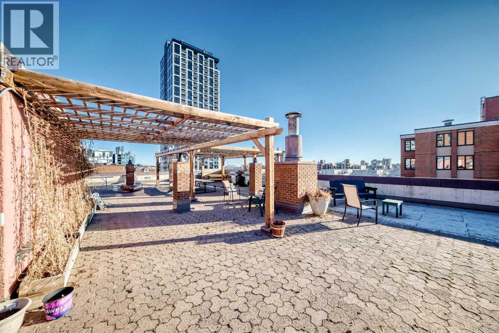 Experience inner-city living at its finest in this beautifully renovated condo offering breathtaking city views. Thoughtfully updated with the urban executive in mind, this residence showcases a sleek, modern design throughout. The kitchen is a standout, featuring quartz countertops, upgraded stainless steel appliances, a stylish upgraded faucet, and newer cabinetry that seamlessly flows into a spacious dining area—perfect for hosting. The generously sized living room is warm and inviting, highlighted by hardwood flooring, a natural gas fireplace, and patio doors that open to the outdoors, creating an ideal space for both relaxing and entertaining. This home offers two large bedrooms, including a spacious primary retreat complete with a walk-in closet featuring custom built-ins and direct access to the impressive 22-foot oversized balcony. The fully renovated four-piece bathroom is finished with a contemporary vanity and modern touches. Additional conveniences include a large in-suite storage room with washer and dryer, knockdown ceilings, updated lighting, and fresh paint throughout. Residents also enjoy access to a spectacular rooftop patio with panoramic 360-degree city views. The parking stall is exceptionally well-located as an end space, offering ample clearance and accommodating oversized vehicles. Lovingly maintained and move-in ready, this exceptional condo is truly a rare find. Call today to book your private viewing of this inner-city gem. (id:6769