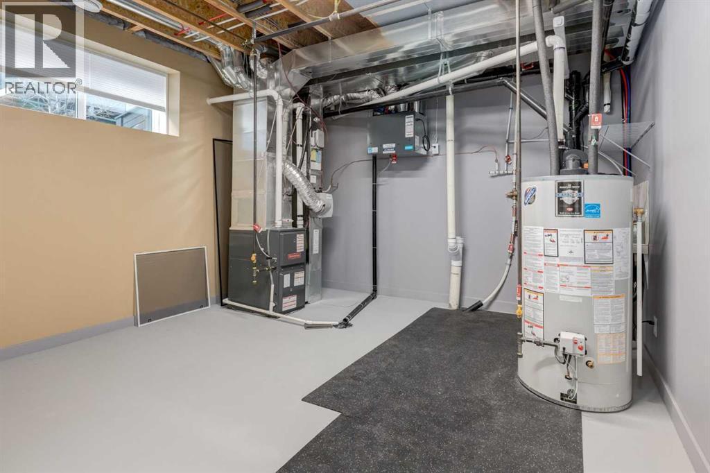 Welcome Home to your like-new double attached garage townhome offering modern design, exceptional functionality, and generous living space in the desirable community of Shawnee Park. The large, open floor plan creates a bright and welcoming atmosphere, perfect for both everyday living and entertaining. A chef’s kitchen anchors the main living area with ample counter space and a seamless flow into the dining and living rooms. The main floor also includes a flexible office space, ideal for working from home or adapting to your lifestyle needs. The entry level features a large utility and storage room that offers incredible versatility and could easily be converted into a home gym, home office, or hobby space. With loads of storage throughout the home, everything has its place. The original builder’s plan shows approximately 1,880 square feet of living space, providing plenty of room to live comfortably. Upstairs, the spacious primary suite is a true retreat, complete with a walk-in closet and a well-appointed ensuite featuring dual vanities. Two additional good-sized bedrooms and a four-piece bathroom provide space for family or guests, while an oversized upper-floor laundry room adds everyday convenience. Set within Shawnee Park, a neighbourhood known for its abundance of greenspace, parks, walking paths, and even a new pickleball court, this home offers a perfect balance of stylish living and an active, outdoor lifestyle. ** all of Shawnee Park is registered as Bareland Condominiums. The low condo fee covers all snow removal and common area landscaping ** (id:6769