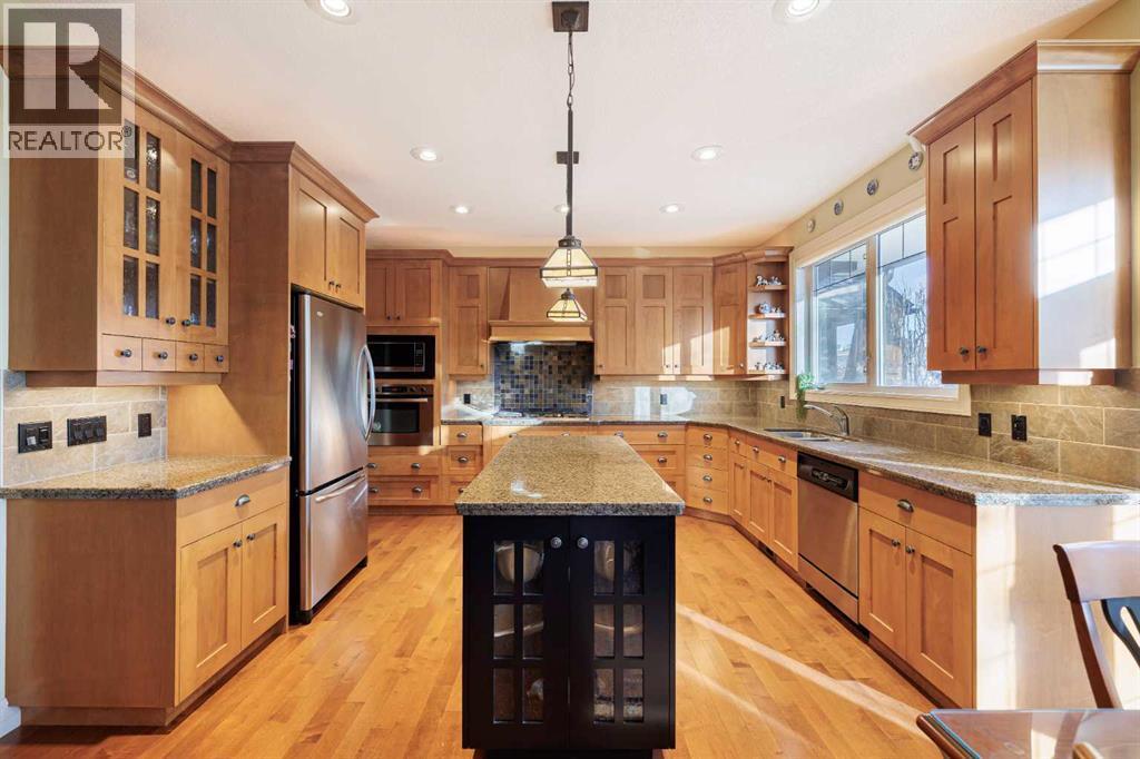 Nestled on a quiet, tree-lined street in the heart of prestigious Tanglewood, this stunning quality-built estate home offers timeless elegance, thoughtful design, and exceptional functionality for modern family living. From the moment you arrive, the home impresses with its welcoming presence, oversized double attached garage with ample storage, and comfort-enhancing features such as central air conditioning. Step inside to a bright and inviting main floor highlighted by a formal dining room just off the front entrance, complete with a beautiful built-in hutch—perfect for hosting elegant dinners or holiday gatherings. A dedicated main floor office with custom built-ins provides an ideal work-from-home space, while a convenient 2-piece powder room and main level laundry add everyday practicality. The heart of the home is the open-concept kitchen, living room, and eating nook. The kitchen is a chef’s dream, featuring stainless steel appliances, a gas range stove, granite countertops, a large central island, and a walk-in pantry. The adjoining eating nook is open and sun-filled, offering direct access to a sprawling back deck—perfect for morning coffee or summer entertaining. The living room is equally impressive with its spacious layout, abundant natural light, and a striking fireplace with stone surround and wooden mantle that anchors the space beautifully. Upstairs, a generous bonus room with custom built-ins offers incredible flexibility and can easily serve as a playroom, secondary office, or even an additional bedroom. The primary retreat is open, bright, and serene, complete with a walk-in closet featuring custom built-ins and a luxurious 5-piece ensuite. This spa-like bathroom includes a private water closet, jetted soaking tub, dual vanities, and a stand-alone shower. Two additional well-sized bedrooms share a 4-piece bathroom, creating a comfortable and functional upper level for family living. The fully developed walkout basement elevates this home even furt her. With high ceilings, in-floor heating throughout, and gorgeous custom built-ins, the expansive family room is perfect for relaxing or entertaining. A large games area, generous storage, and a guest bedroom with its own 4-piece ensuite provide exceptional versatility. Direct access to the lower-level patio leads to a private, treed backyard that is both sunny and serene—an ideal outdoor retreat. Close to schools, walking paths, the train station and all amenities this home is in the perfect location to meet all your needs! Surrounded by mature trees and offering outstanding privacy, this exceptional Tanglewood estate seamlessly blends luxury, comfort, and thoughtful design in one truly remarkable home. (id:6769